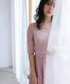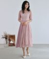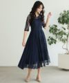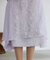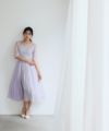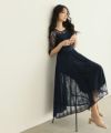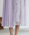 シフォンプリーツとレースのスカートがふんわり広がるデザインでキュートでフェミニンな印象に。
