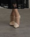 上品なサテンと透け感のあるシースルーの切替がおしゃれなブーティ。