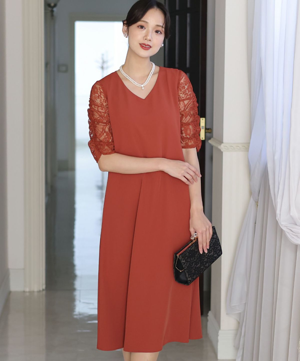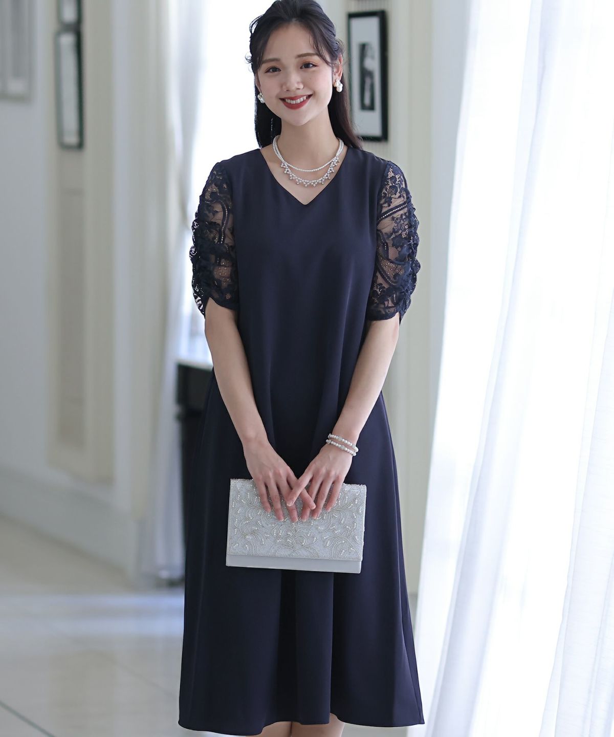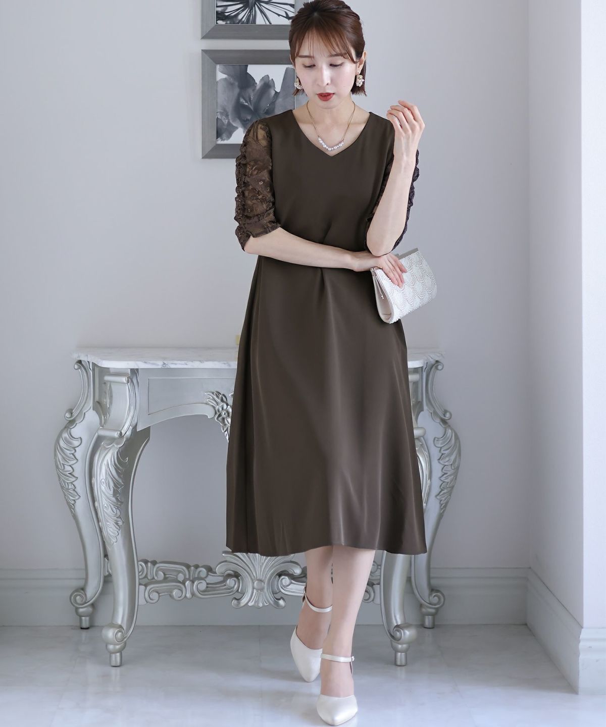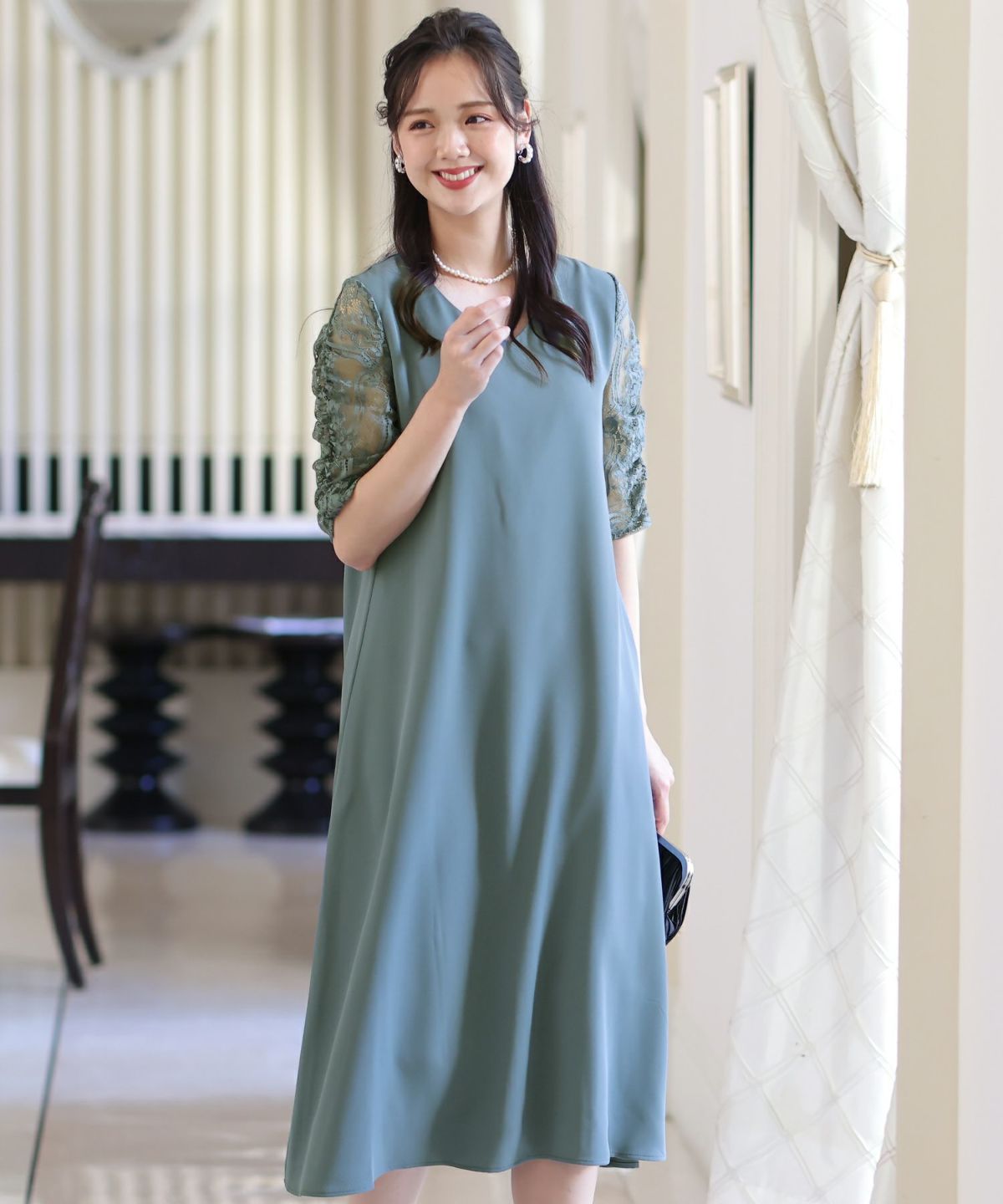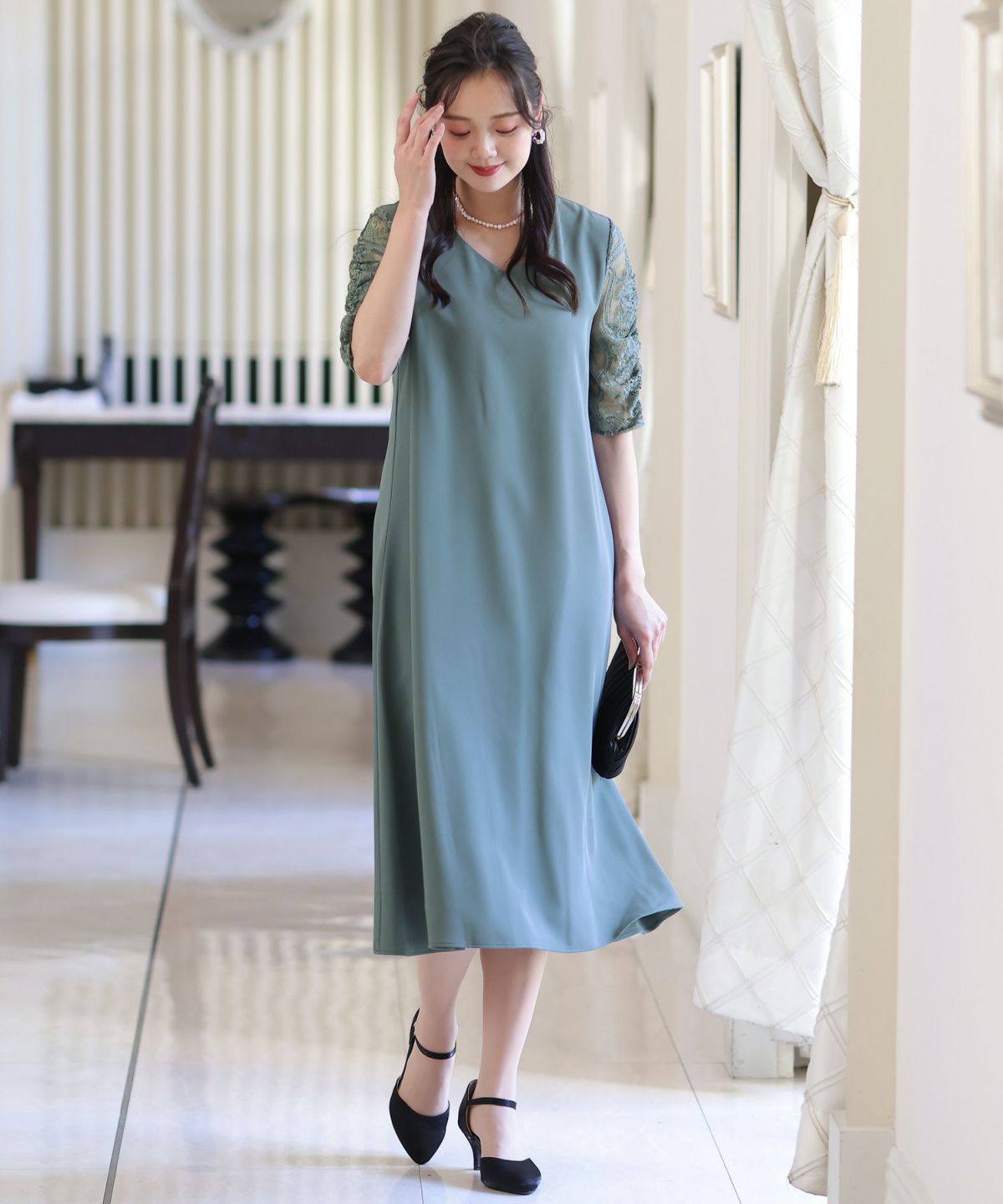 ■袖のレースで軽い印象にスカートは程よくハリのある生地感で歩くたびに上品に揺れてくれます。