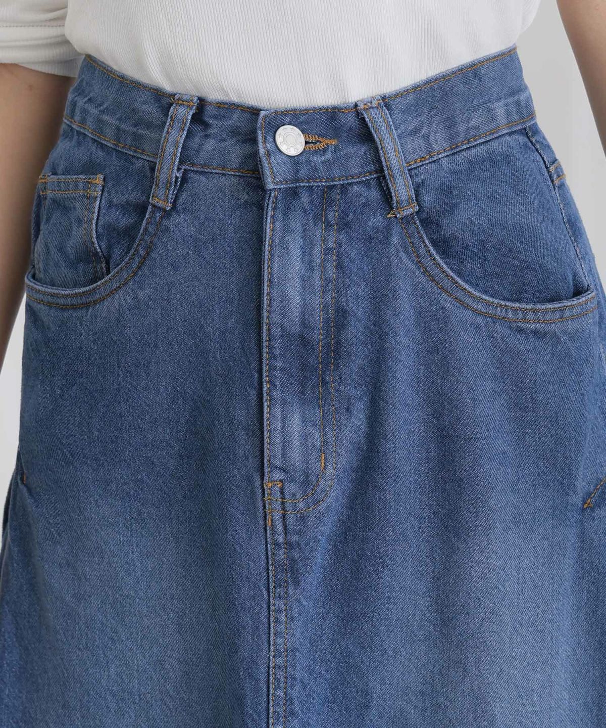 サイドのタックが特徴的なデニムスカート コットンサイドタックデニムスカート