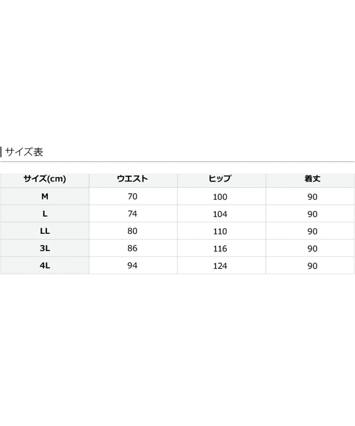 サイズ(cm) ウエスト ヒップ 着丈