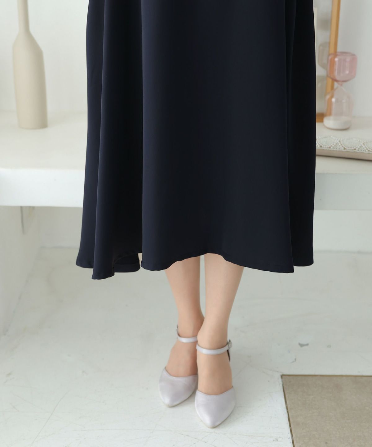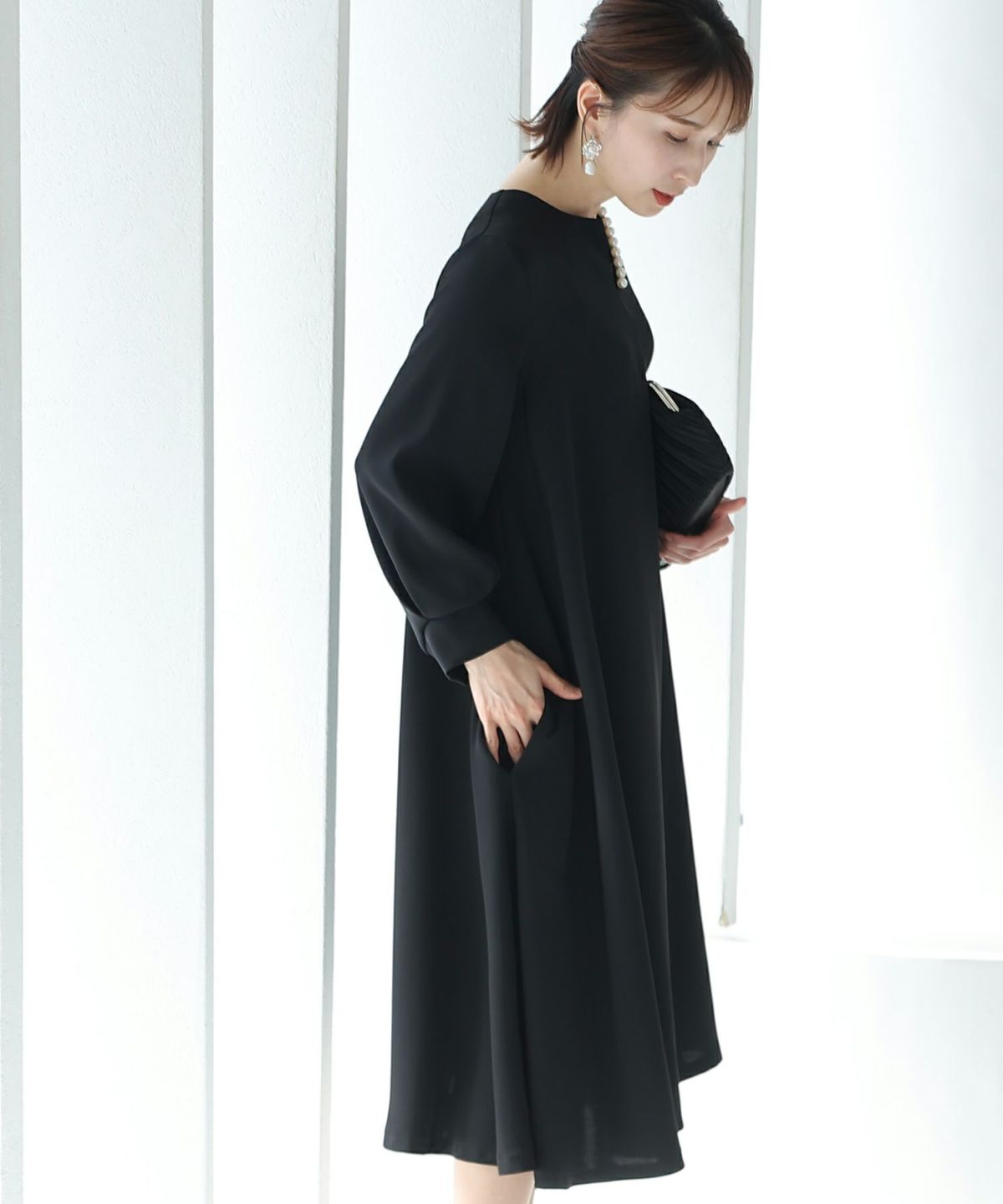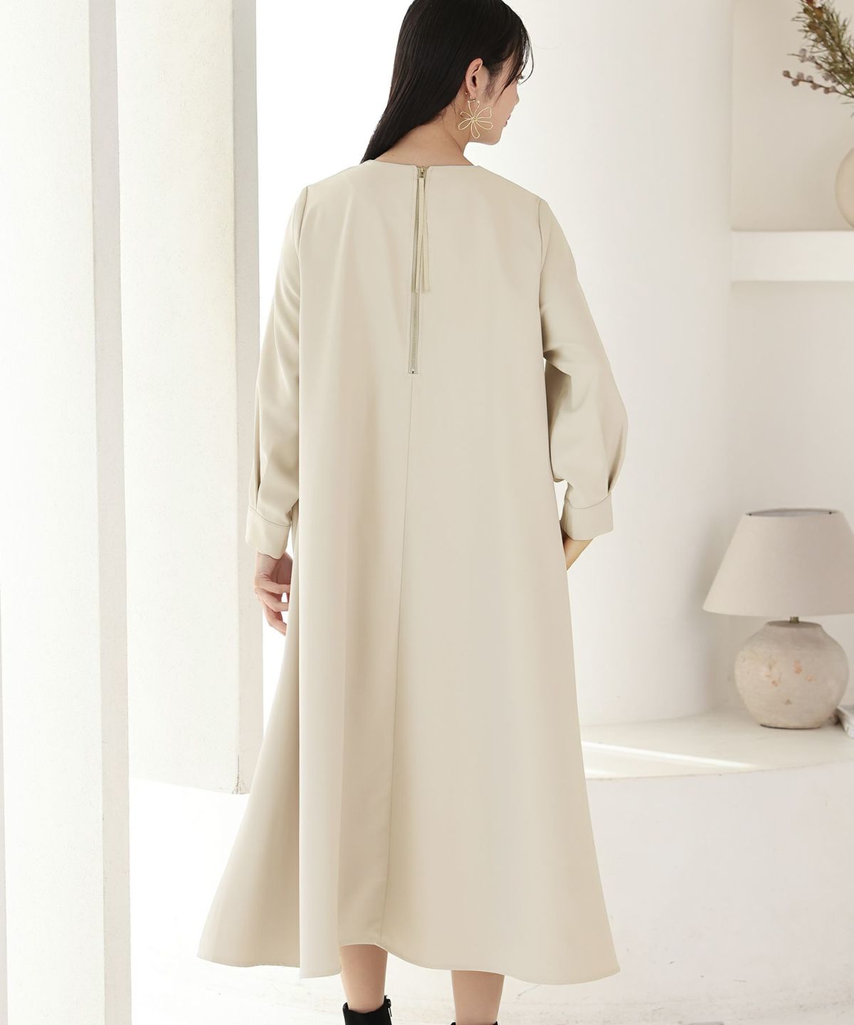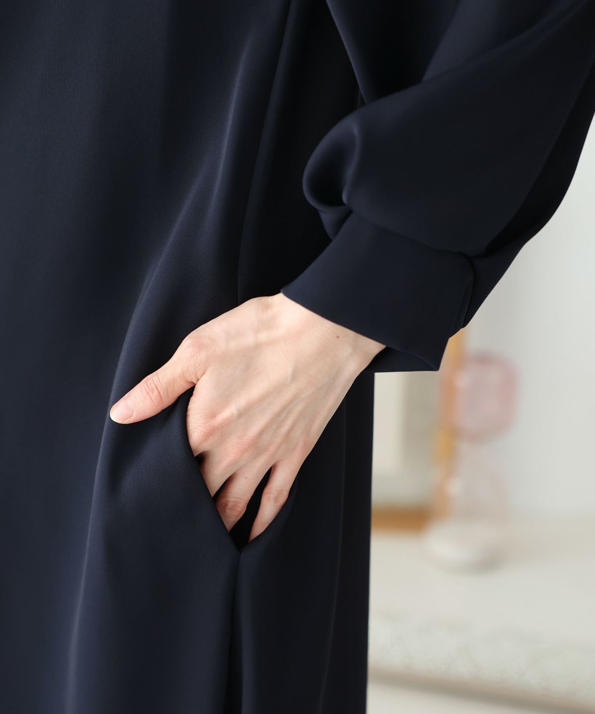 ■高見えするハリ感のある生地を使用便利なポケット付きも嬉しいポイント。歩いたときのスカートの揺れ感もきれいなワンピースです。
