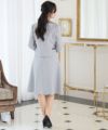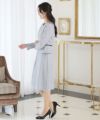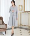 タックが施されたジャケットと同素材のスタイルアップワンピース。