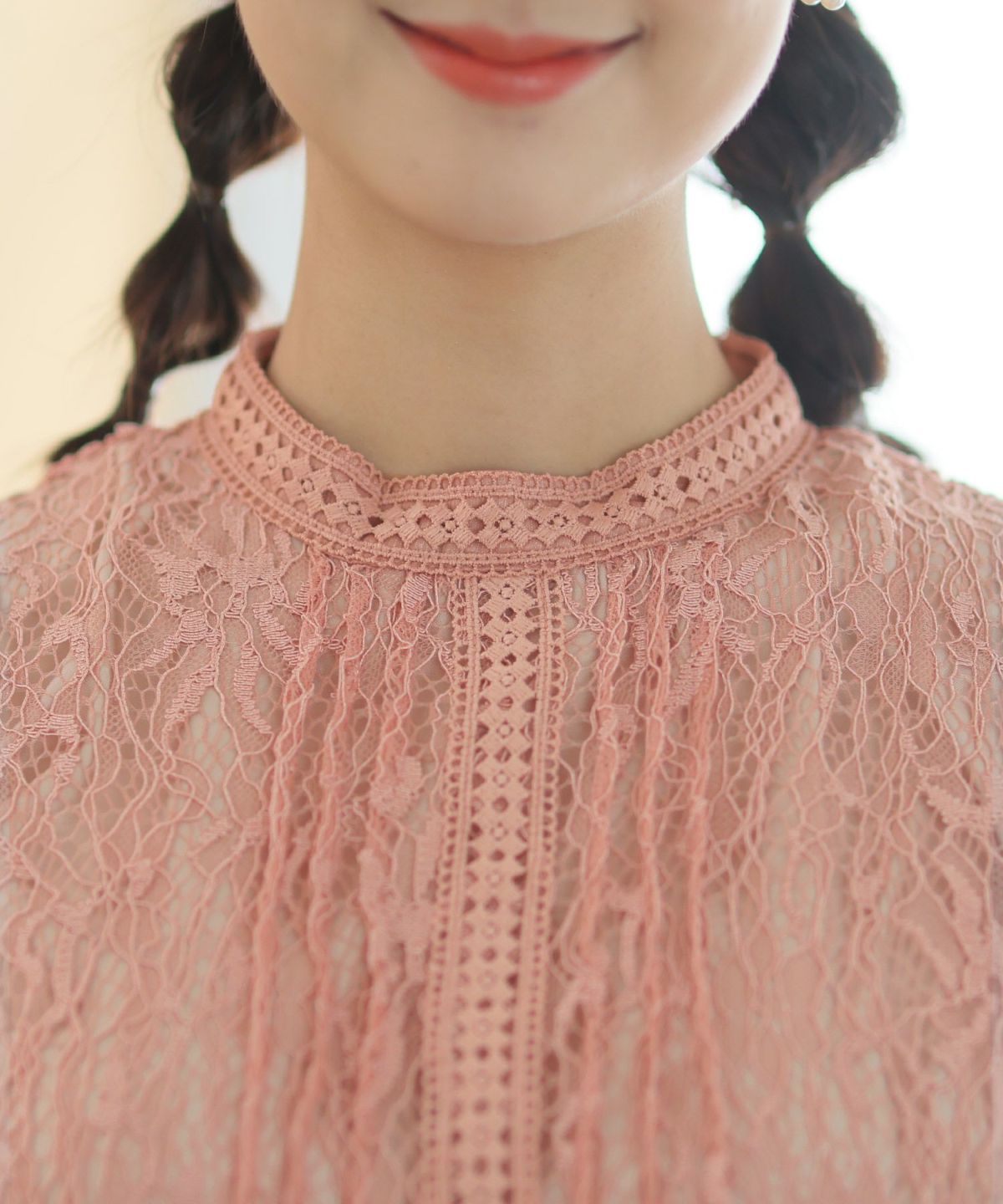 ■柔らかいレース生地の揺れ感が美しいスリーブ部分と裾部分の程よい透け感が上品で女性らしいワンピースです。