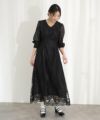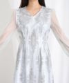シアー素材の長袖が抜け感を与え、エレガントながらも重くなりすぎないデザイン。