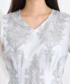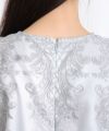 ドレス全体に施された緻密な刺繍が、存在感と上品さを引き立て、