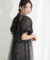 インナーワンピースとのコントラストで縦ラインを強調し、すっきりとした印象に。