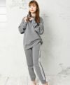 ゆったりサイズなので窮屈さもなく、ルームウェアにぴったり。ボトムスにはポケットが付いております。白のラインデザインでシャープさを演出♪