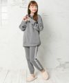 ボトムスとトップスがセットになったルームウェアです。裏起毛なのでとても暖かく、着心地も◎