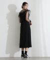 デコルテを華やかに彩るラッフルとシアー素材が女性らしさを引き立てるドレス。