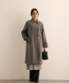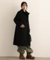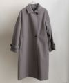 なめらかなフェイクウール素材を使用した、上品でモダンな印象のロングコート。