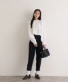 パンツはストレートシルエットで脚のラインを美しく見せ見せてくれます。