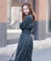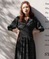 【二の腕】【脚】【ウエスト】【ヒップ】ブラウジングシルエットの可愛いウエストは、シャーリングを施しメリハリあるスタイルに。バルーン袖が二の腕を細見せしてくれます♪