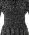 ブラウジング風の身頃とシャーリングが引き締まったウエストラインを演出してくれます。さらに小顔効果のあるVネックや、切り替え高めのデザインでバストラインも綺麗に見せてくれるのが嬉しい♪
