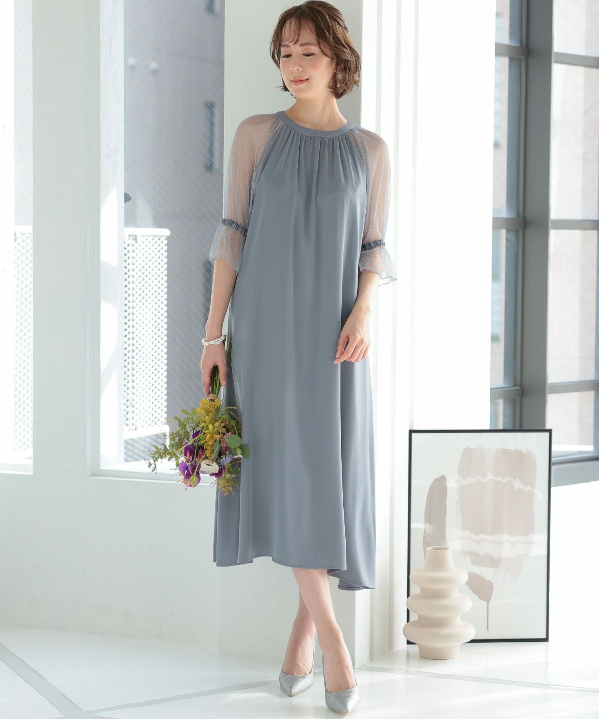 ■ふんわり動きのある袖で二の腕をさりげなくカバー体型カバーポイント:【二の腕】【脚】【ウエスト】【ヒップ】体型を拾わないので妊娠中から産後まで様々な体型の方が着用可能ですすっきりとしたネックラインで顔回りを綺麗にみせてくれます