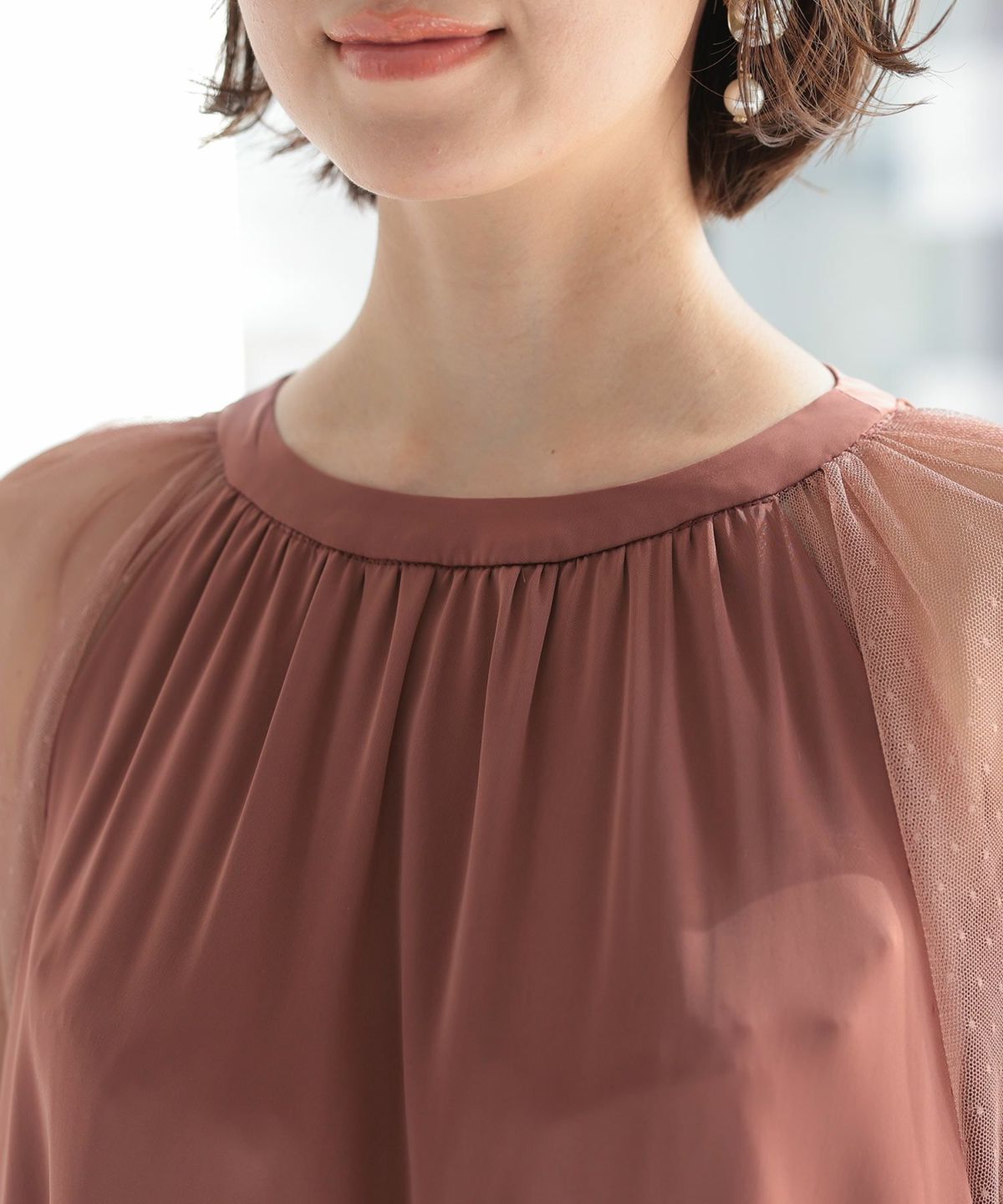 ■程よい透け感レースで女性らしい印象にとろみのある生地感でやさしい着心地