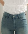ストレッチの効いた、フィット感あるシルエットが魅力的なデニム。スッキリとしたトップスとのコーデやビッグシルエットシャツとの組み合わせも可愛い万能アイテム。