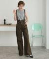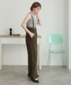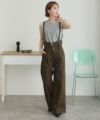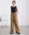トレンドのワイドシルエットがおしゃれ サスペンダー付きハイウエストツイルパンツ