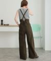 トレンドのワイドシルエットがおしゃれ サスペンダー付きハイウエストツイルパンツ