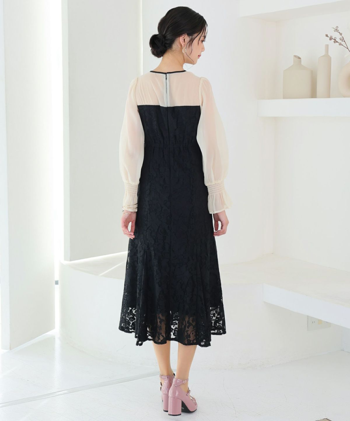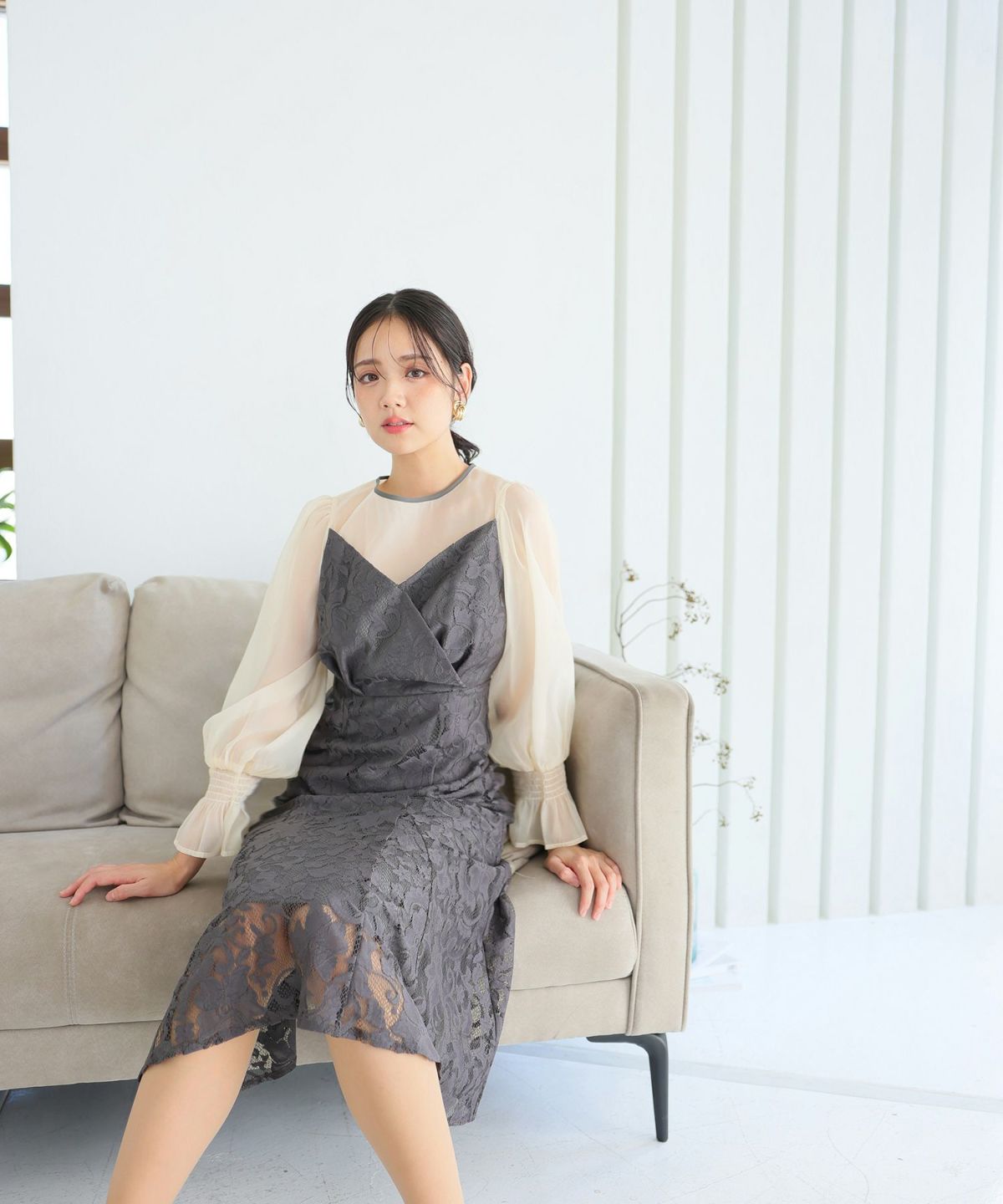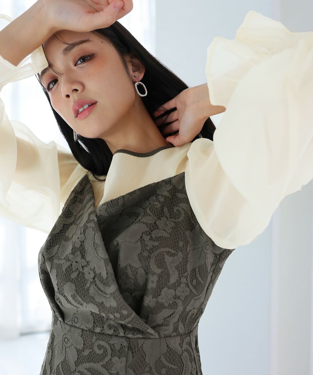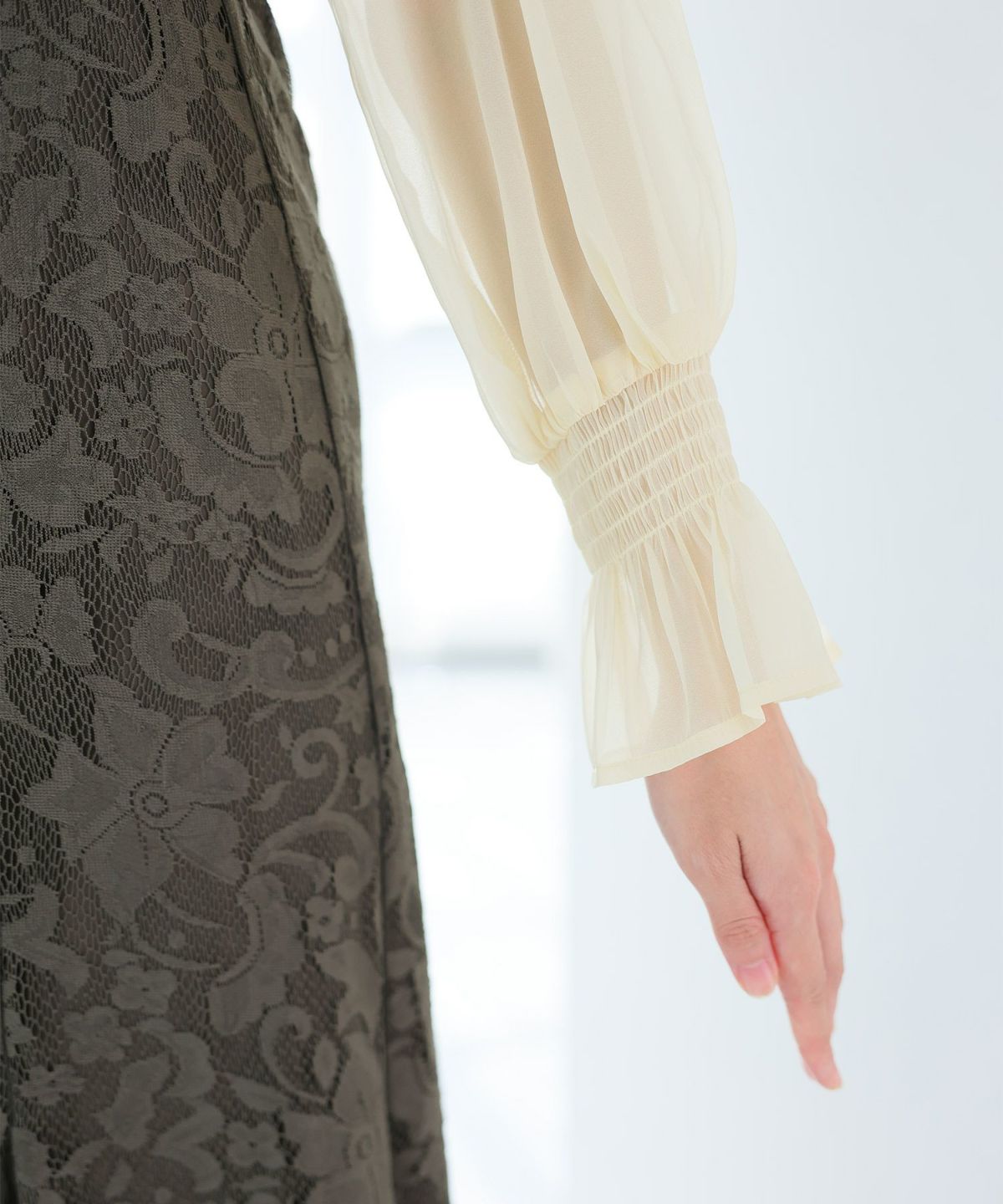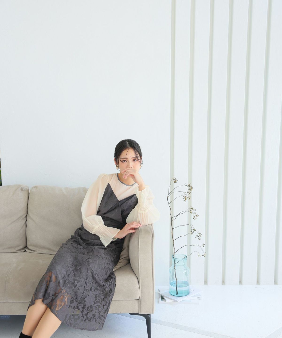 デコルテから袖にかけての程よい透け感でやわらかい雰囲気に
