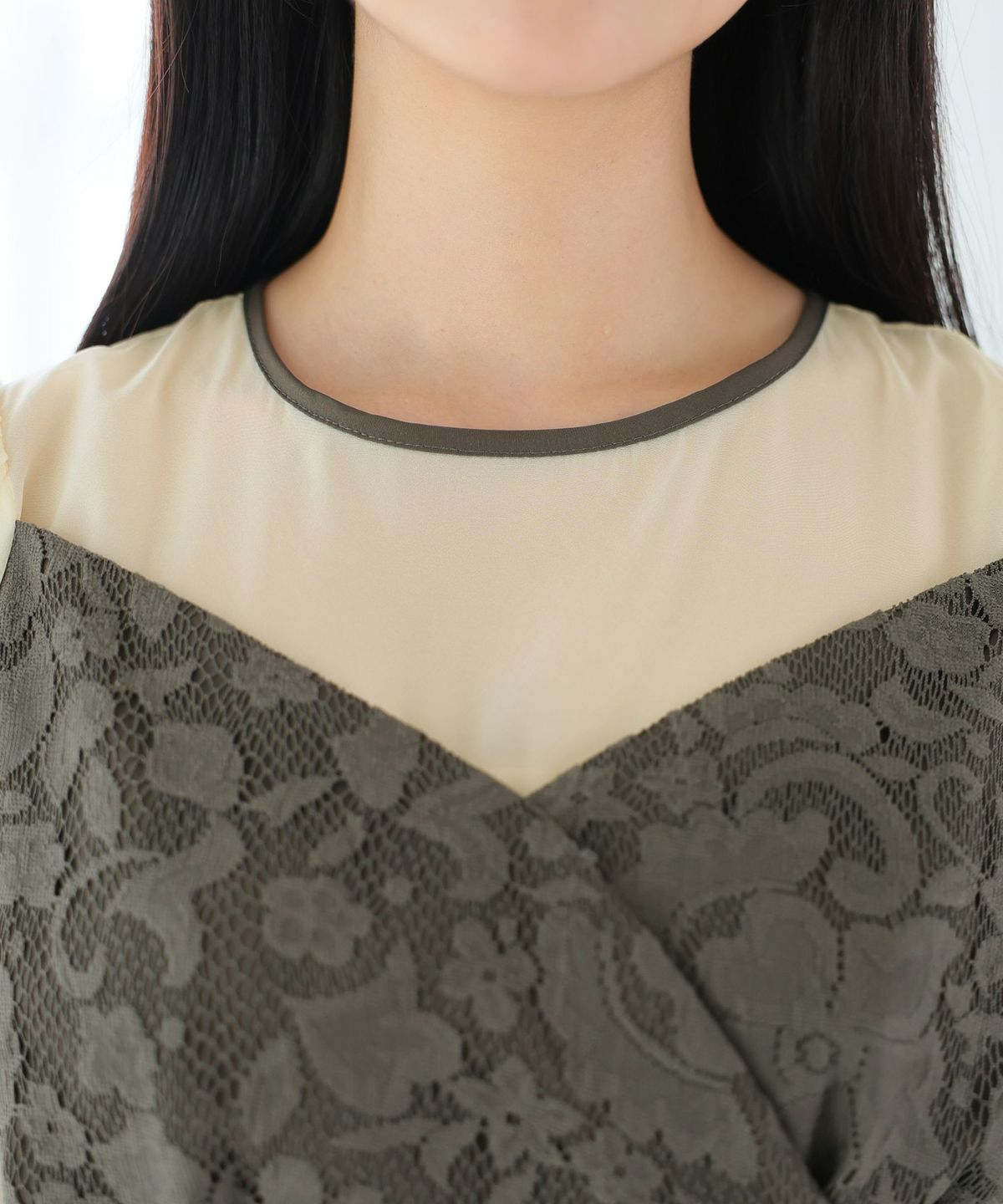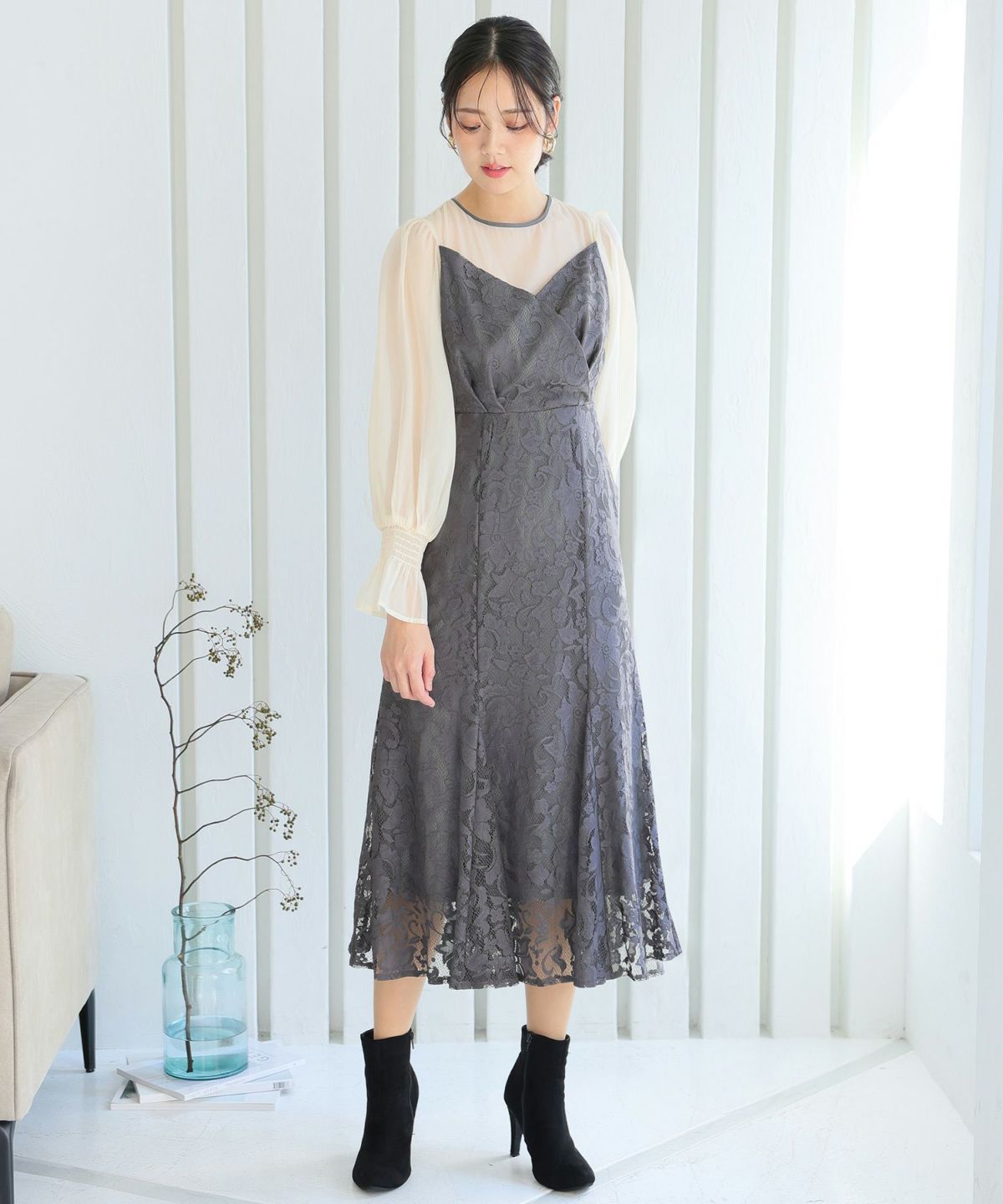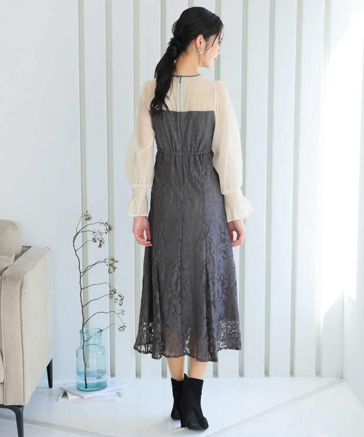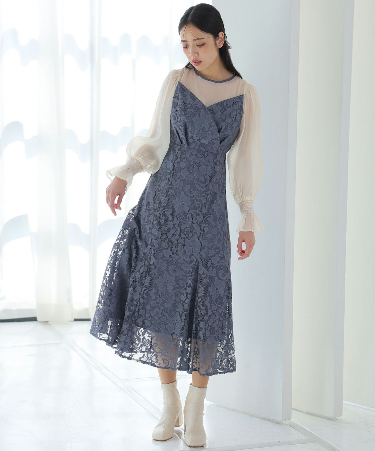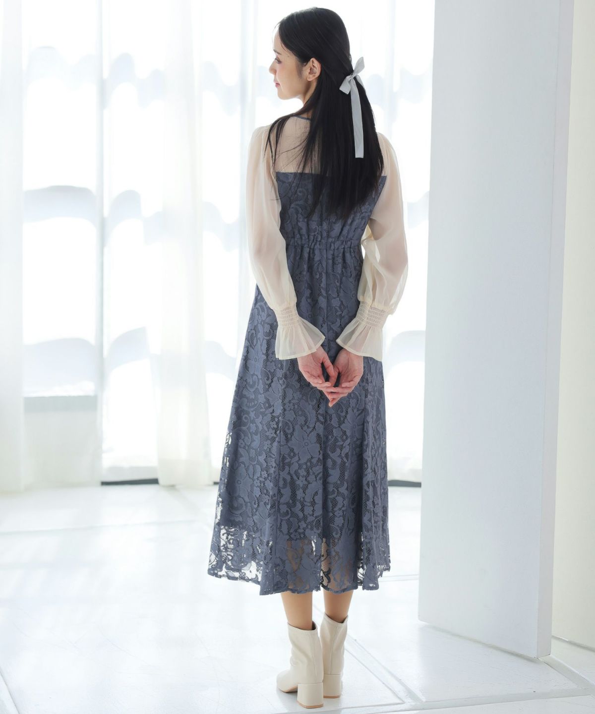 デコルテから袖にかけての程よい透け感でやわらかい雰囲気に