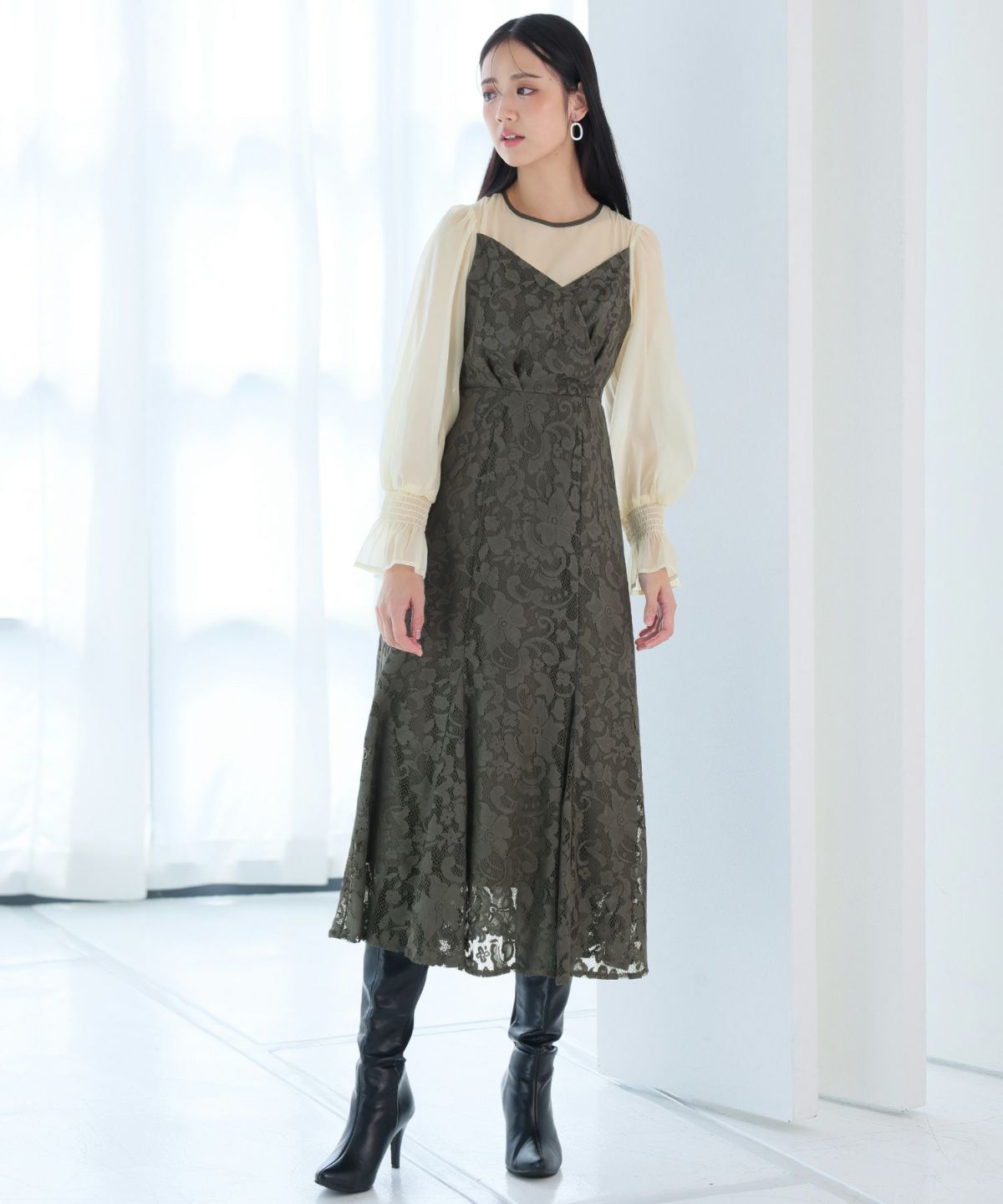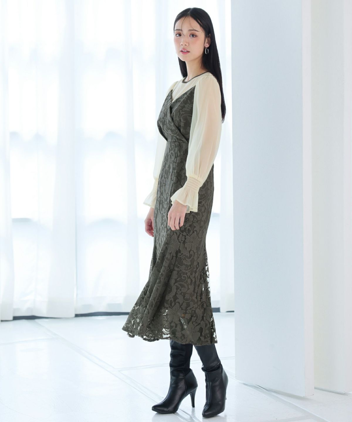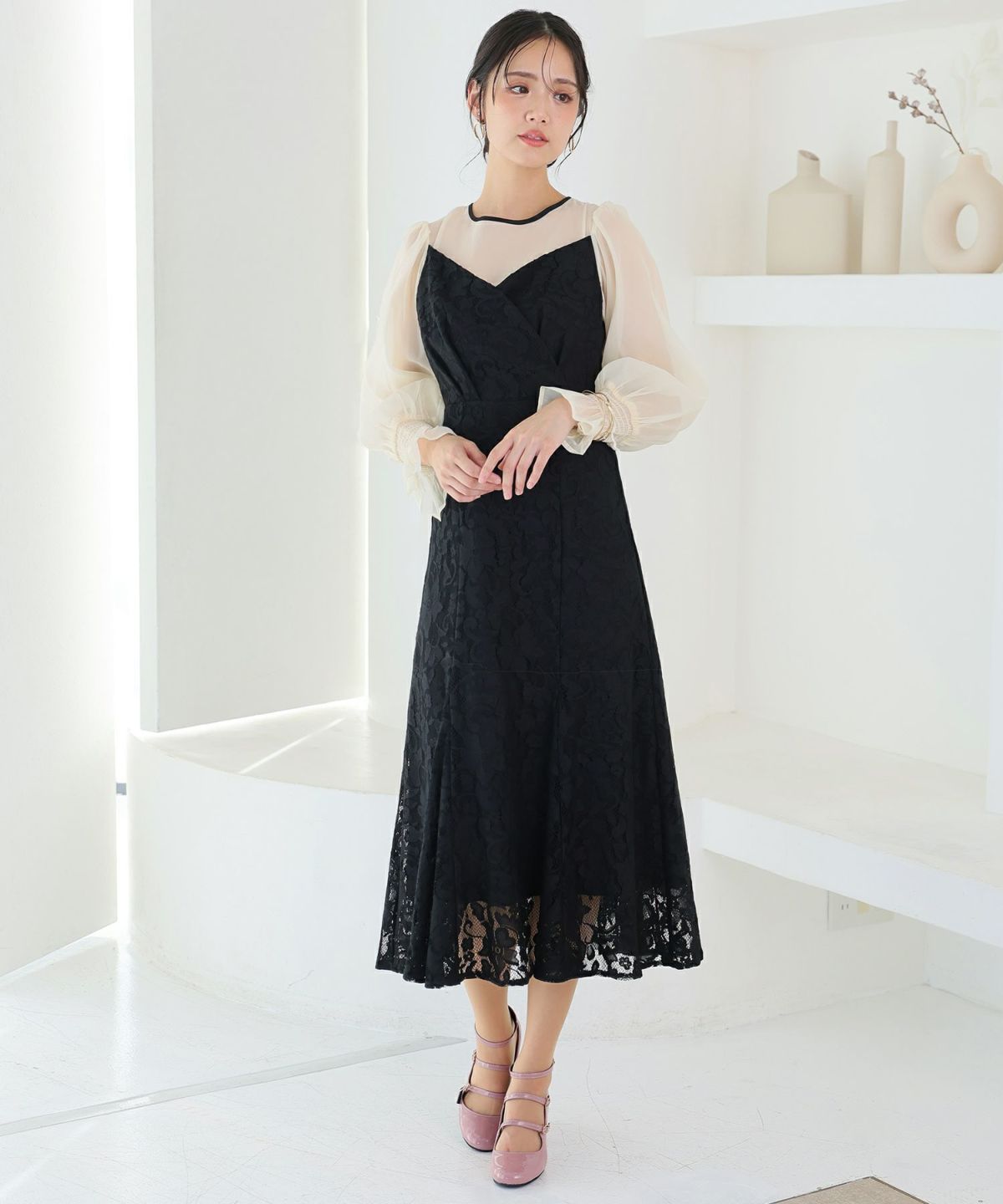 ふんわりした袖とマーメイドラインの組み合わせが可愛い