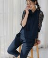 袖部分のレースが、フェミニンな雰囲気を演出。
