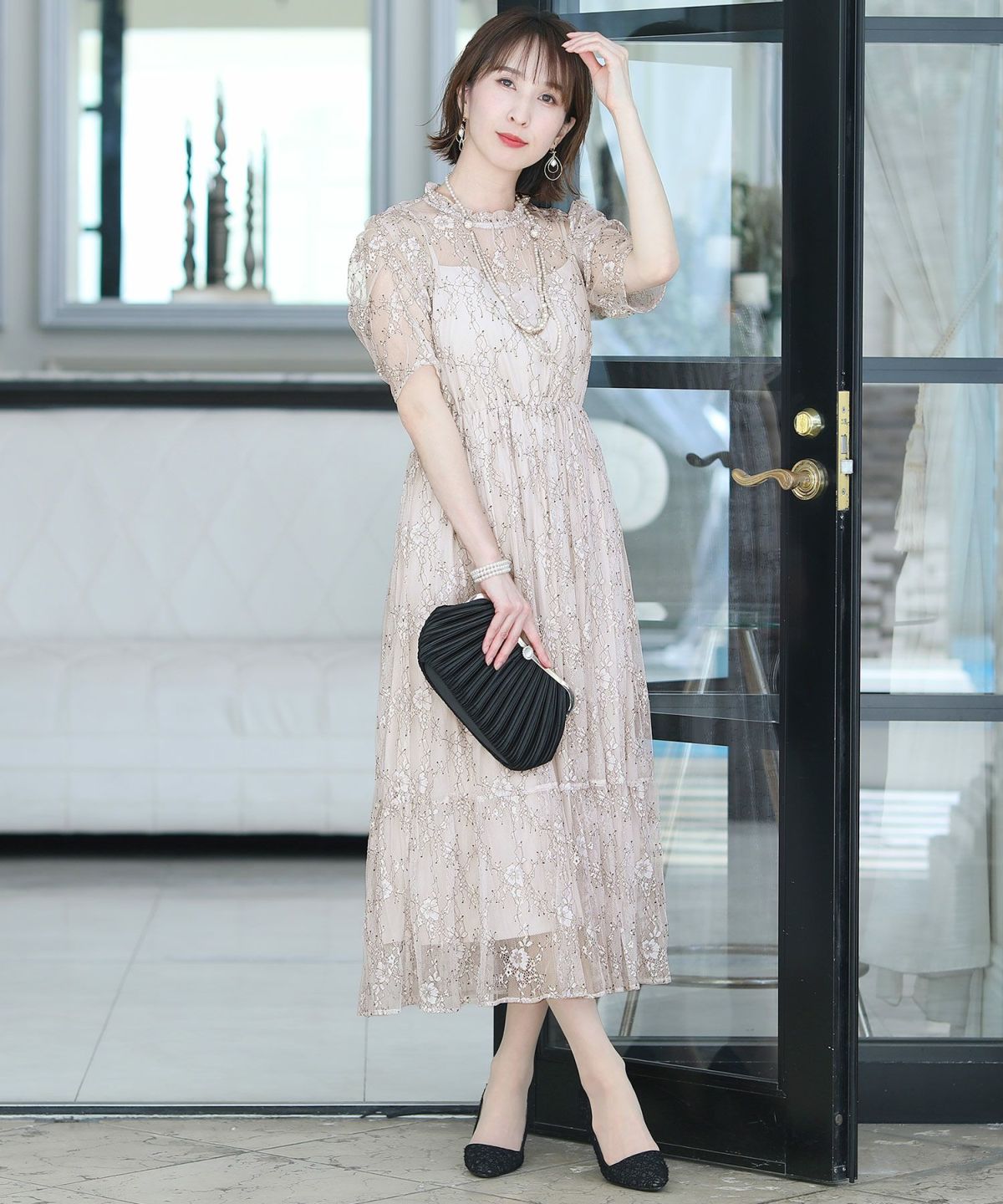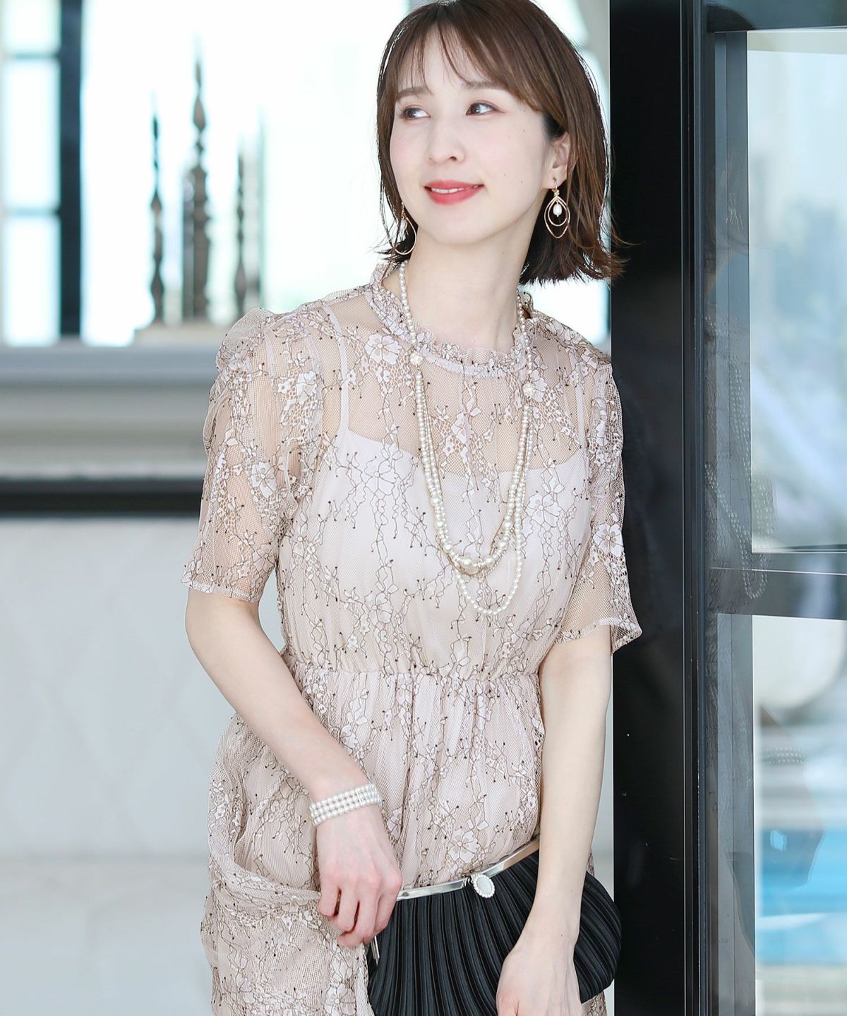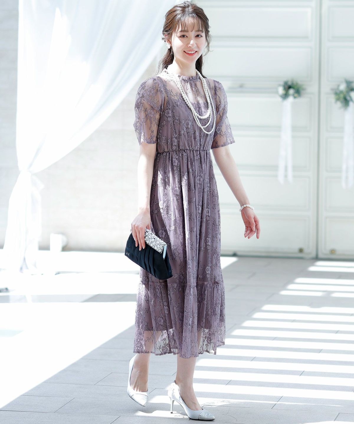 黒縁取りレースとロング丈のデザインが大人可愛いを叶えます。シアーな透け感が軽やか。1枚で着れてアウター要らず。