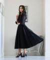たっぷり生地を使用したロングフレアスカートが動くたびにとても優美に揺れます。お袖はオーガンジーに繊細なレースを重ね上品なシアー感に仕上がっています。