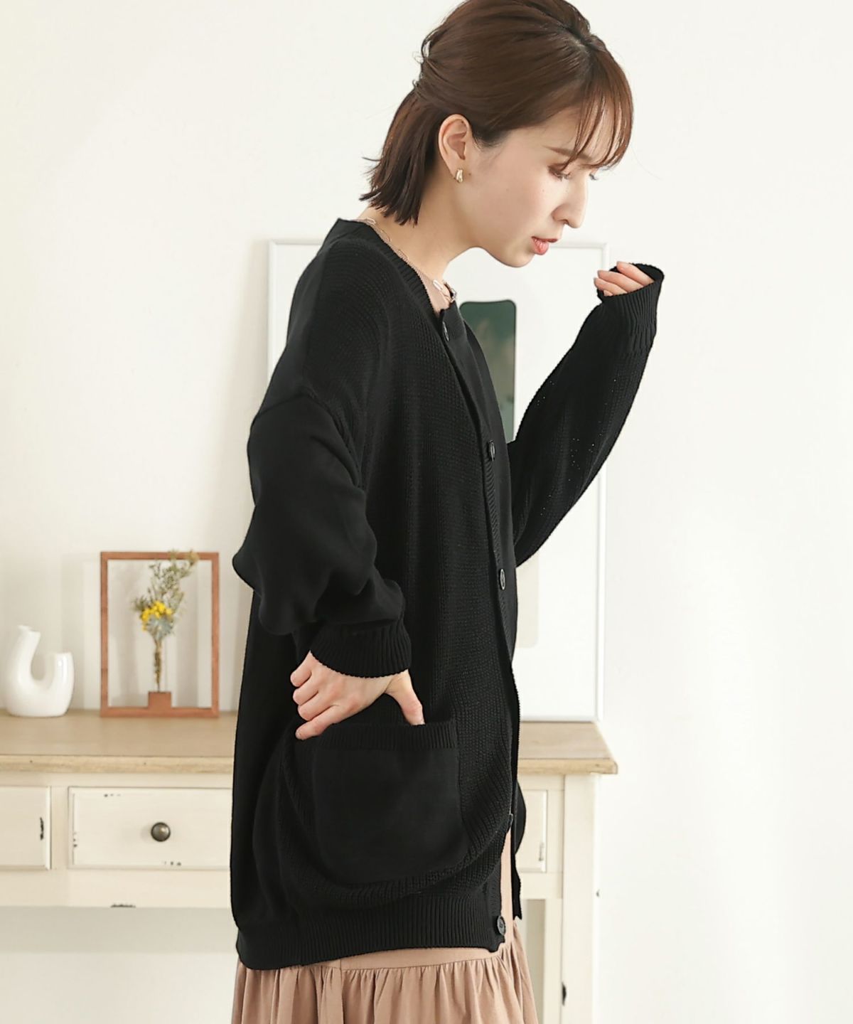 ゆったりと着られるオーバー目の着用感で着心地のいいカーディガン。体型カバーも叶えてくれるサイズ感がポイントです。