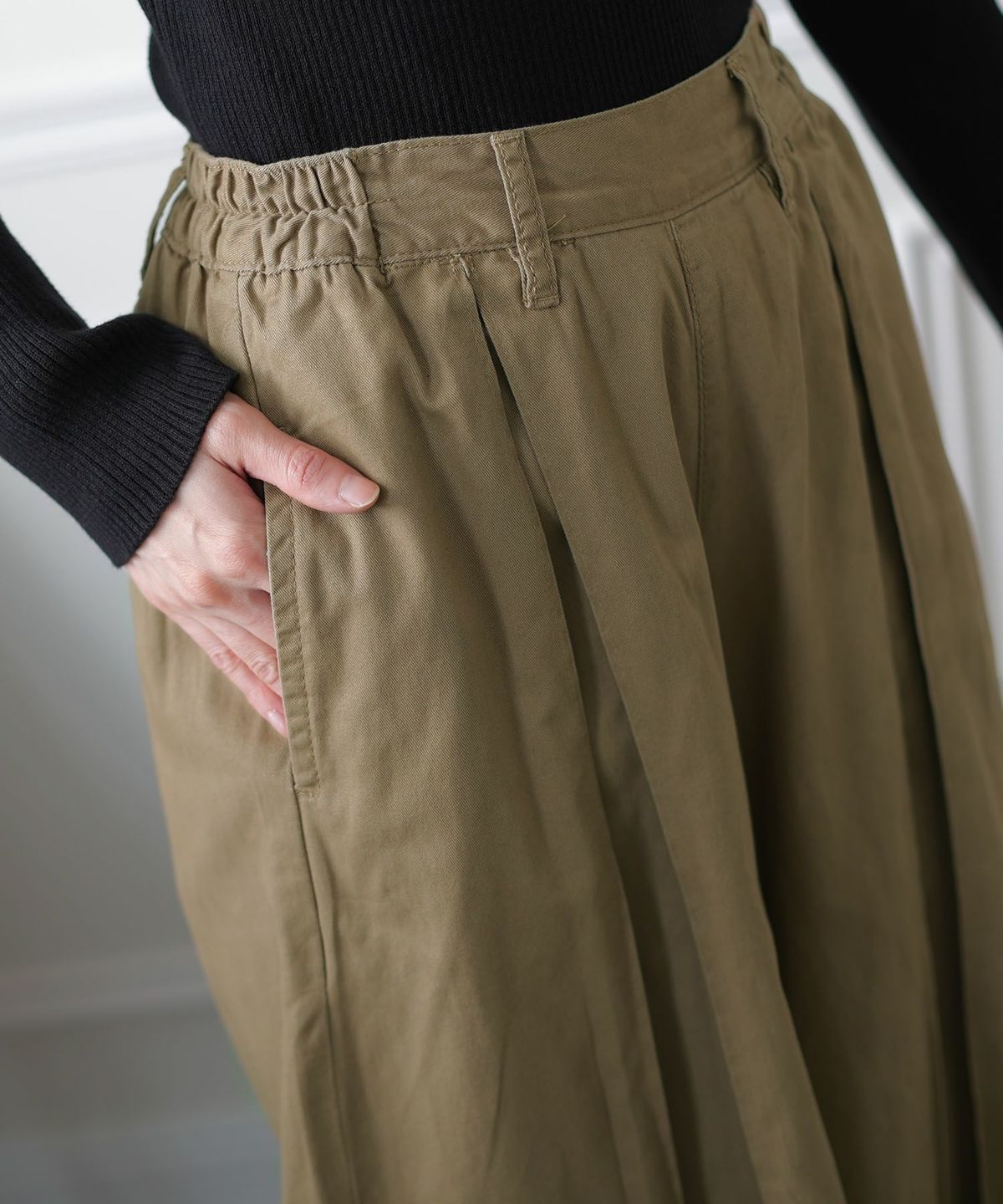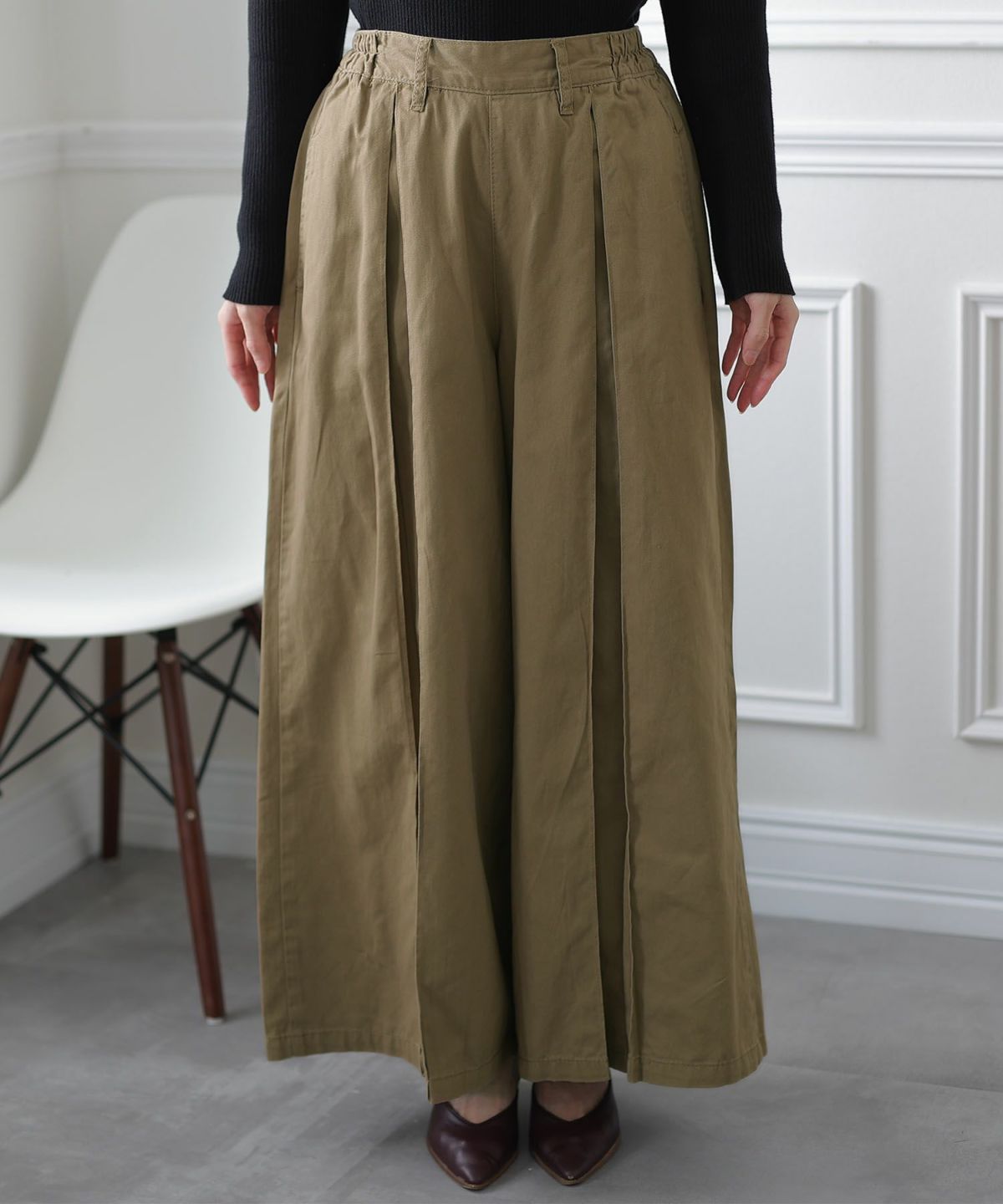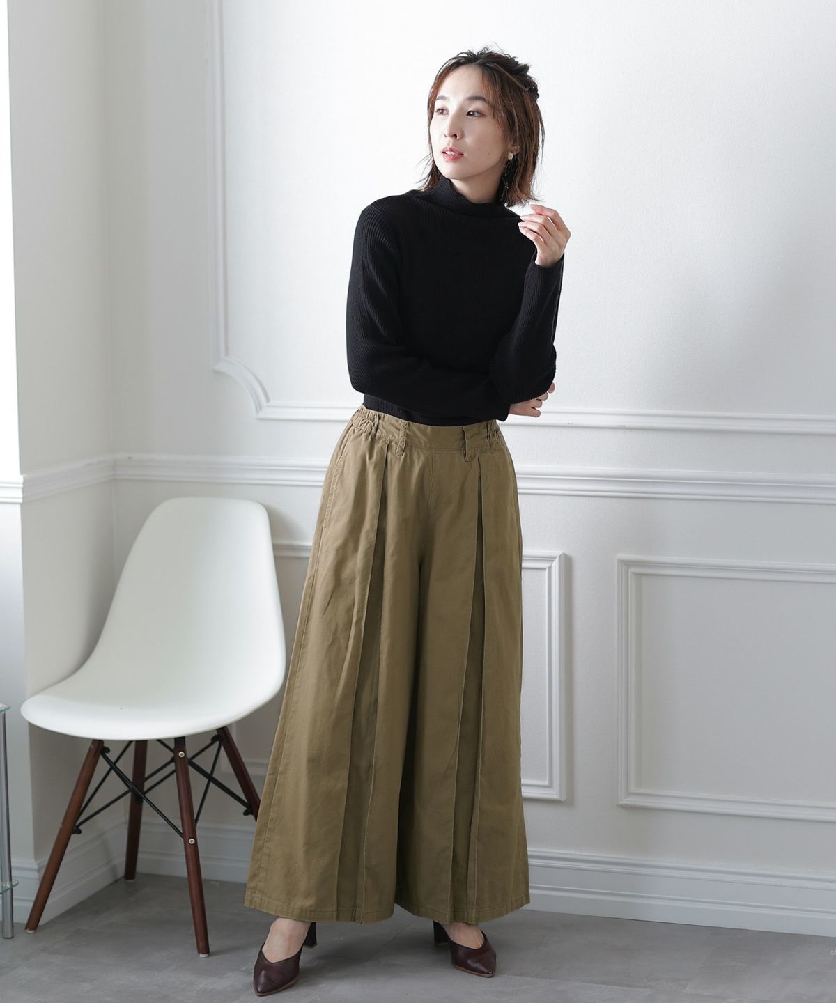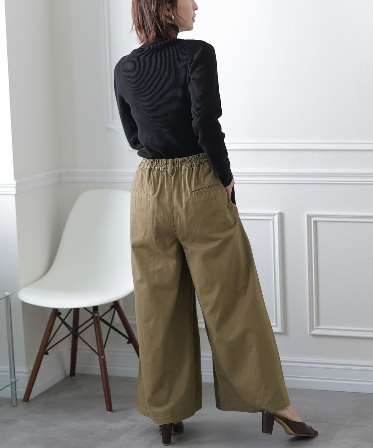 ワイドパンツは下半身のシルエットが気になる方にもおすすめです。ウエストにゴムが入っているので、気軽に着用できます。
