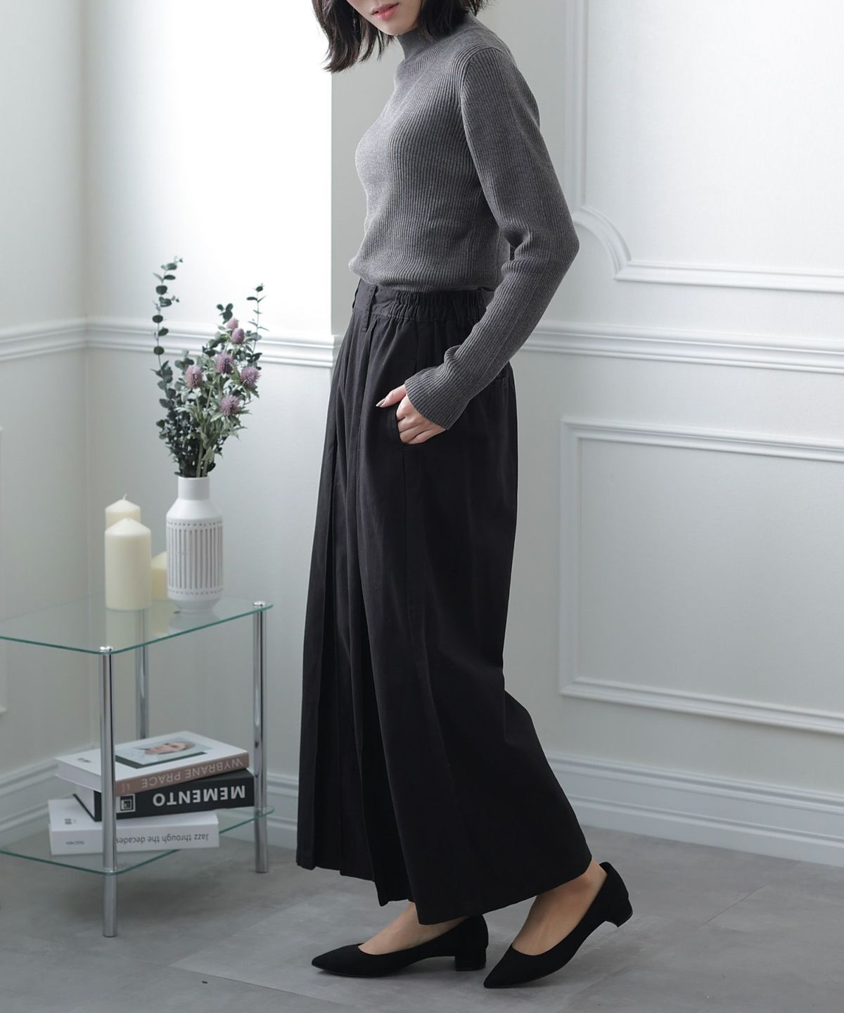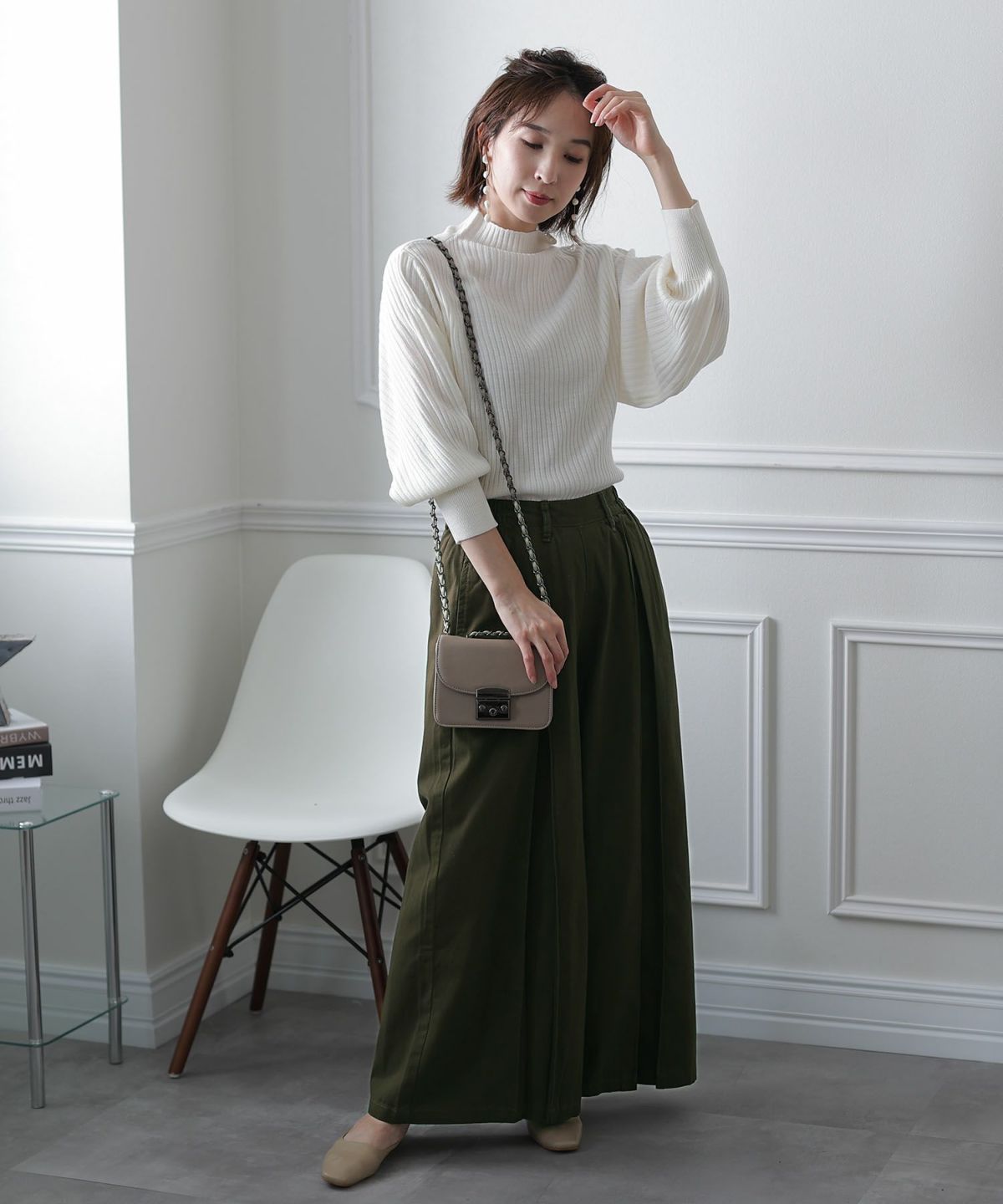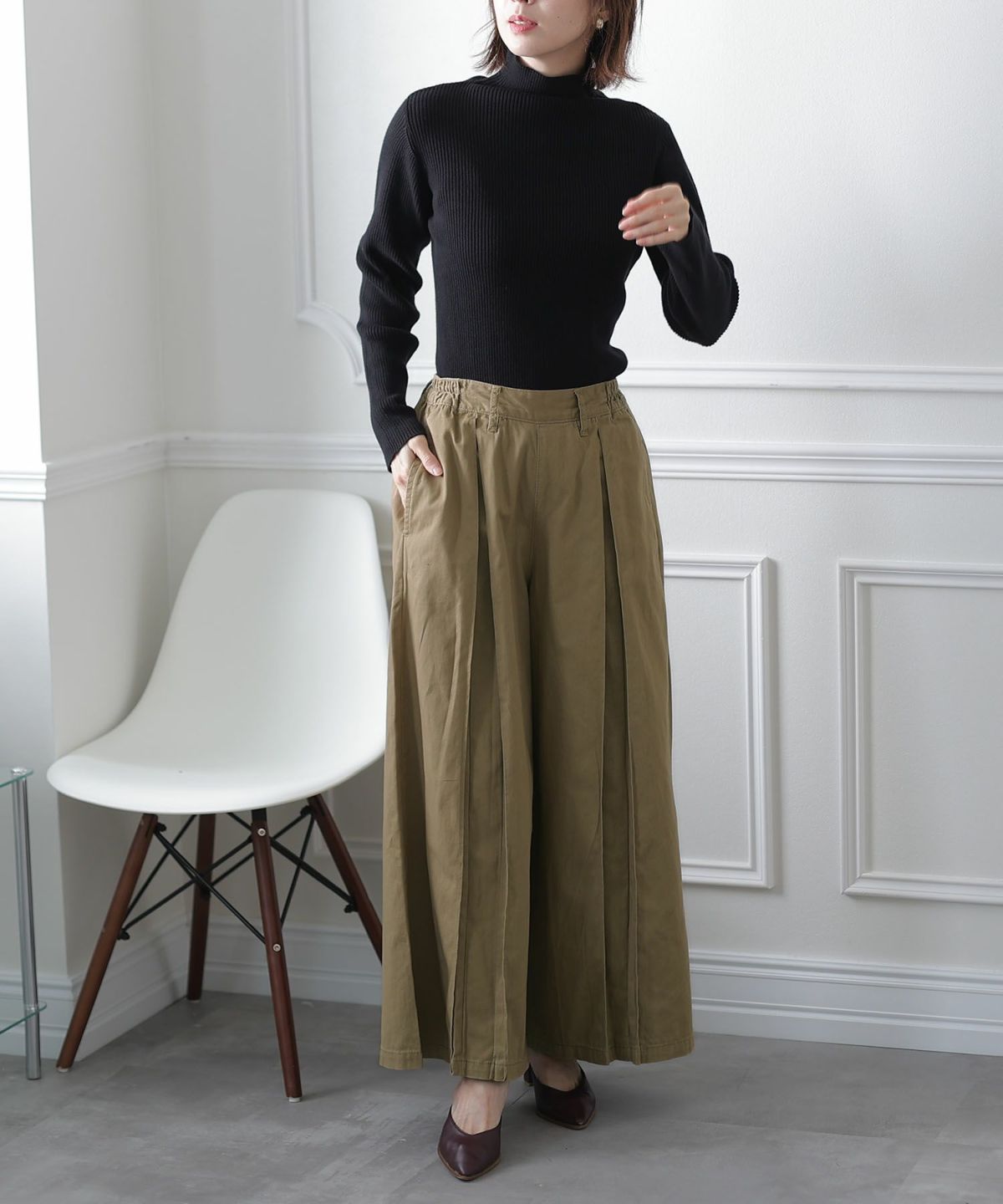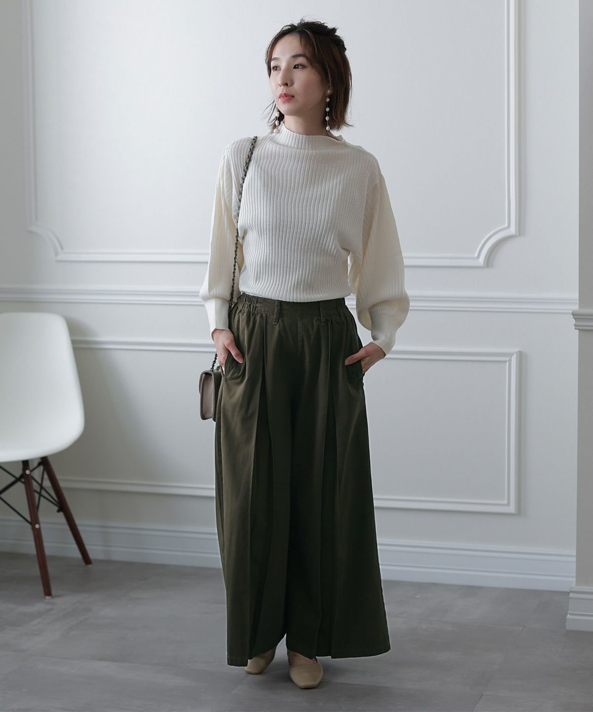 ワイドパンツは下半身のシルエットが気になる方にもおすすめです。ウエストにゴムが入っているので、気軽に着用できます。