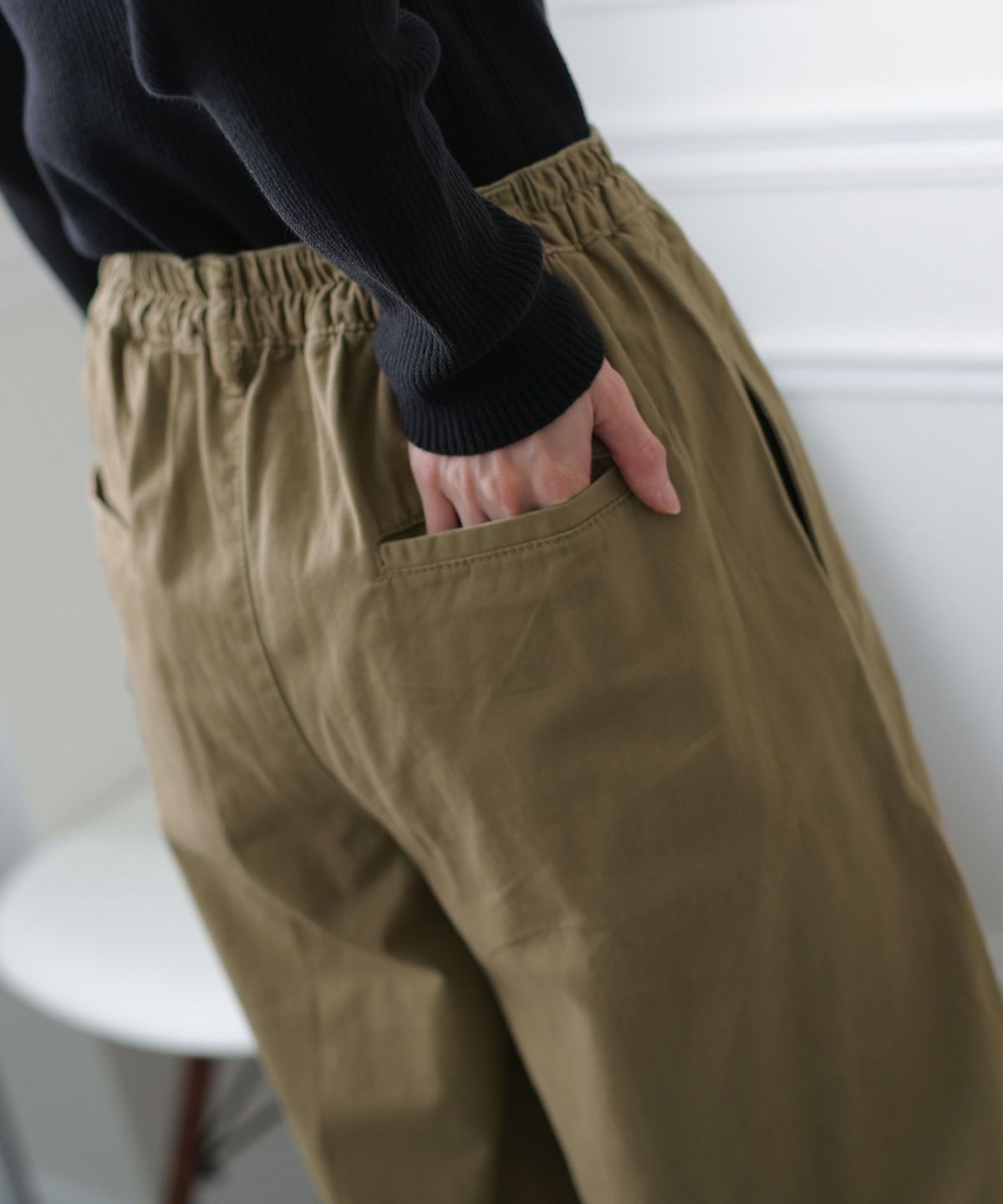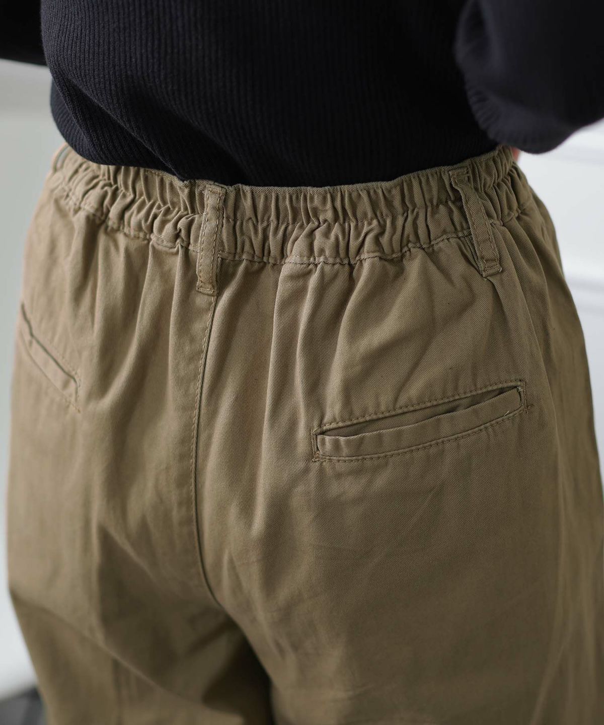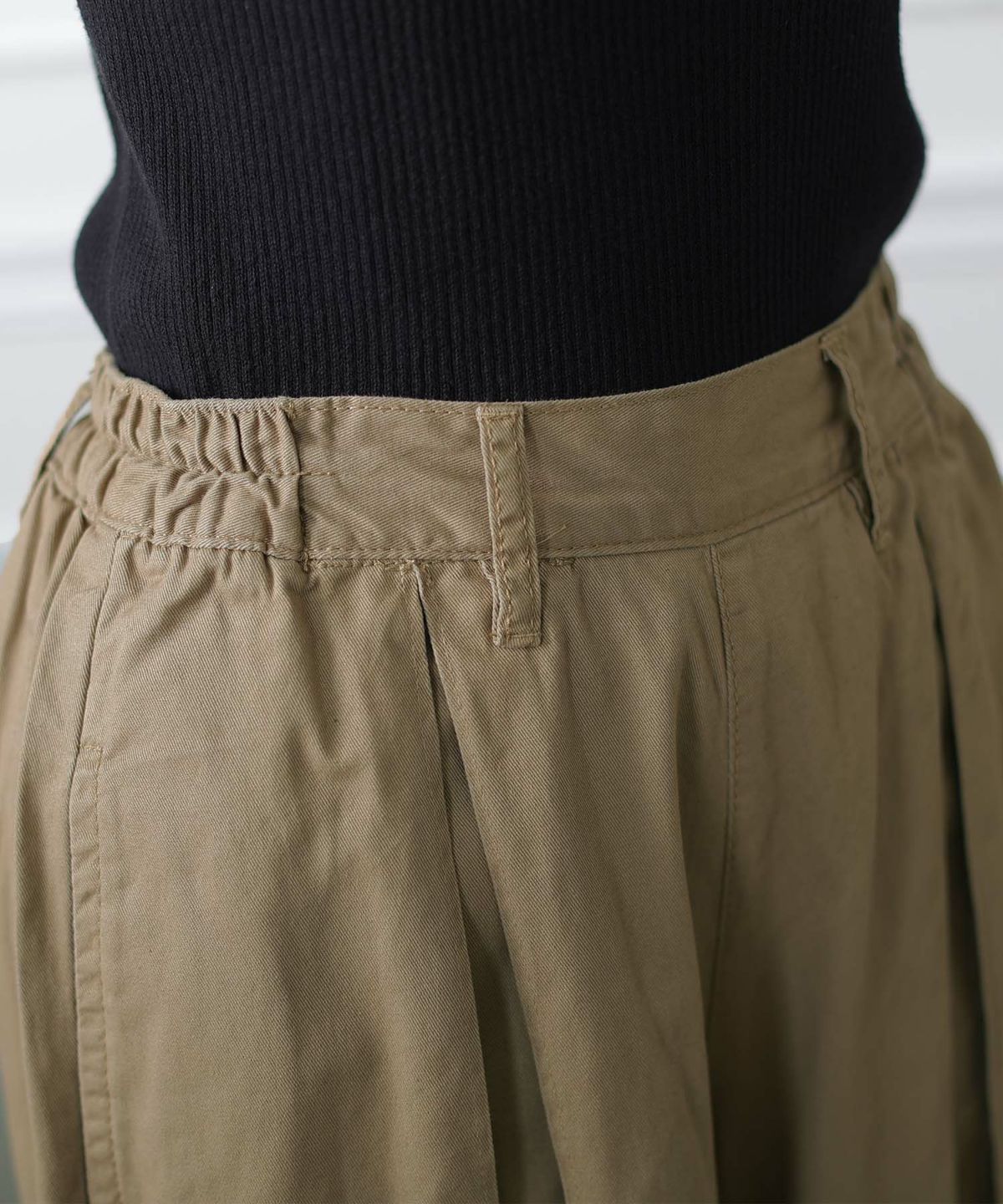 カジュアルさがありながらもフロントに入ったタックが大人っぽさを醸し出す万能パンツ。どんなトップスにも合わせやすいので着回し力抜群です◎
