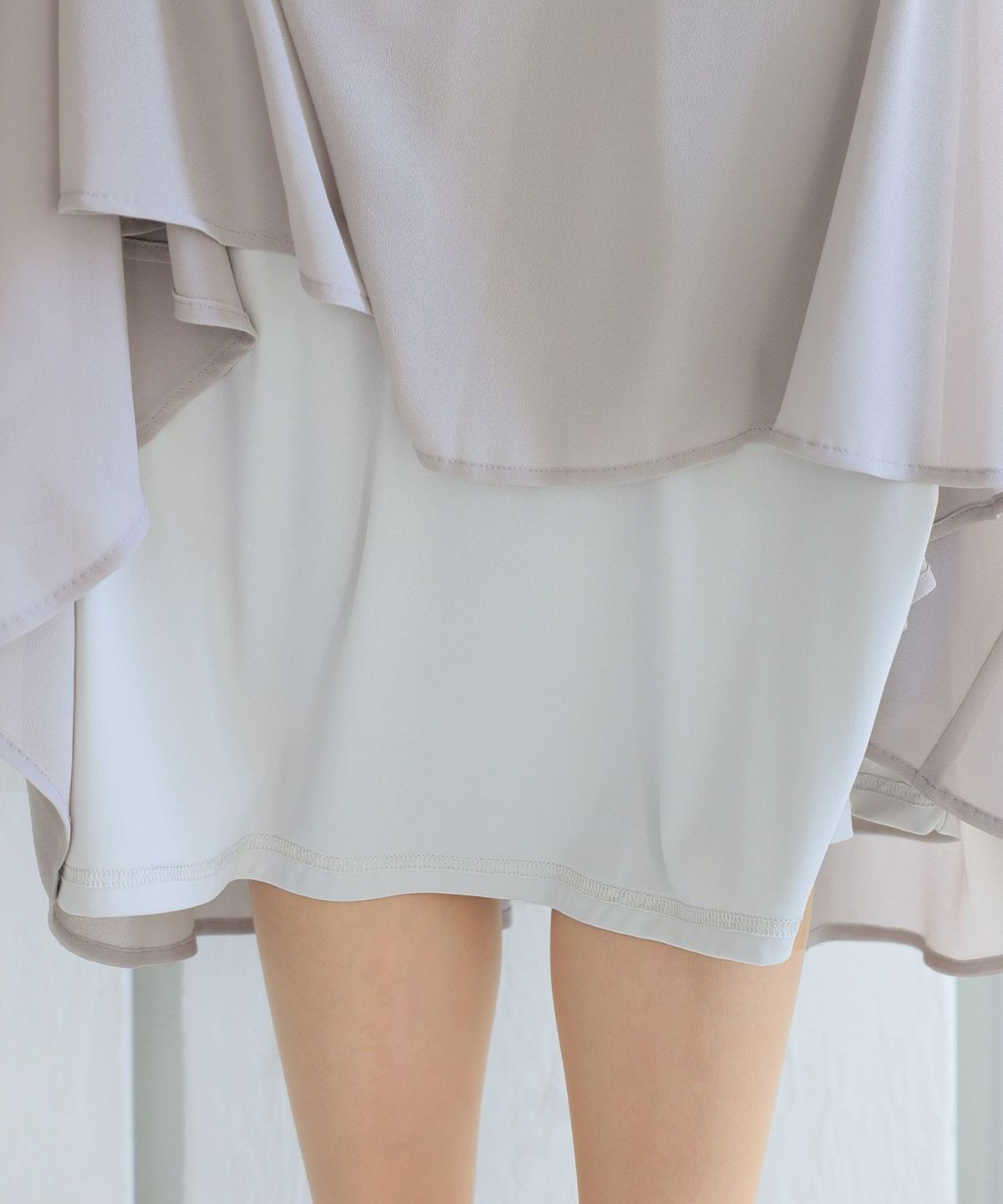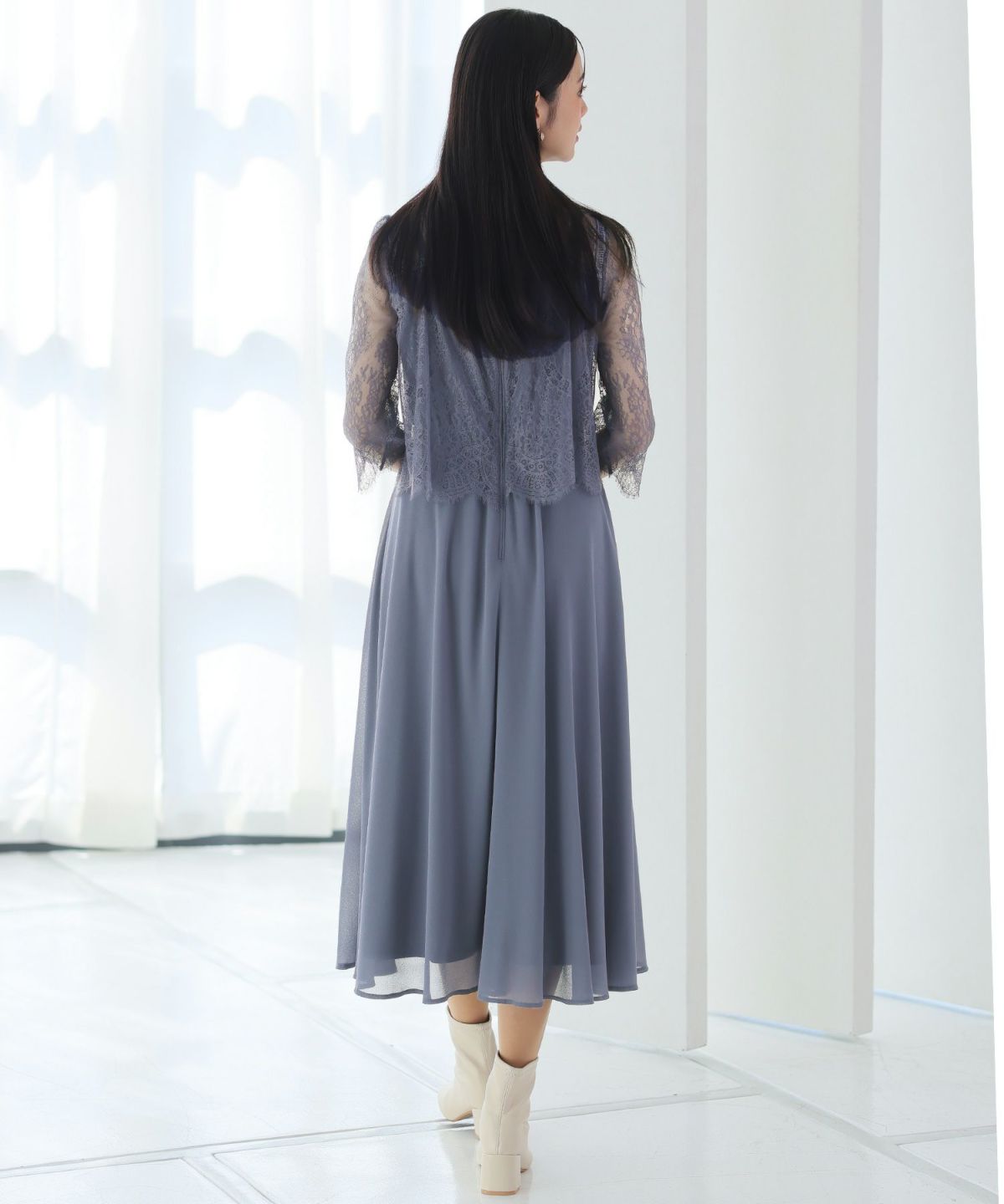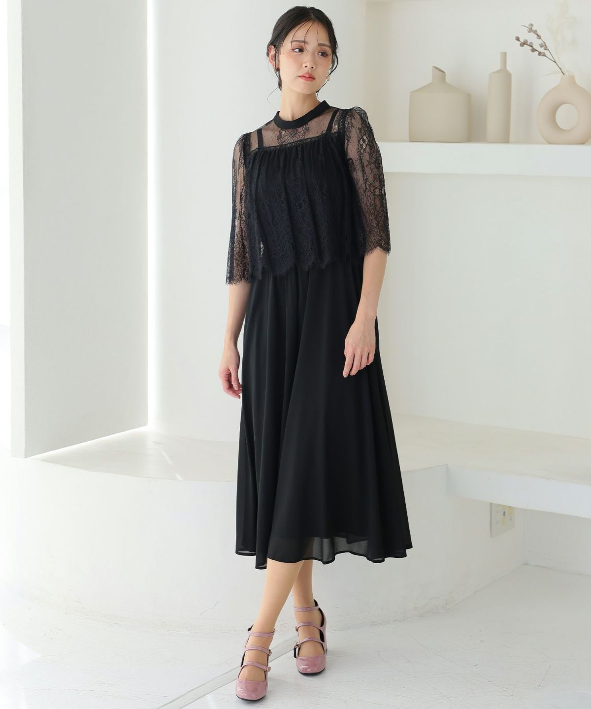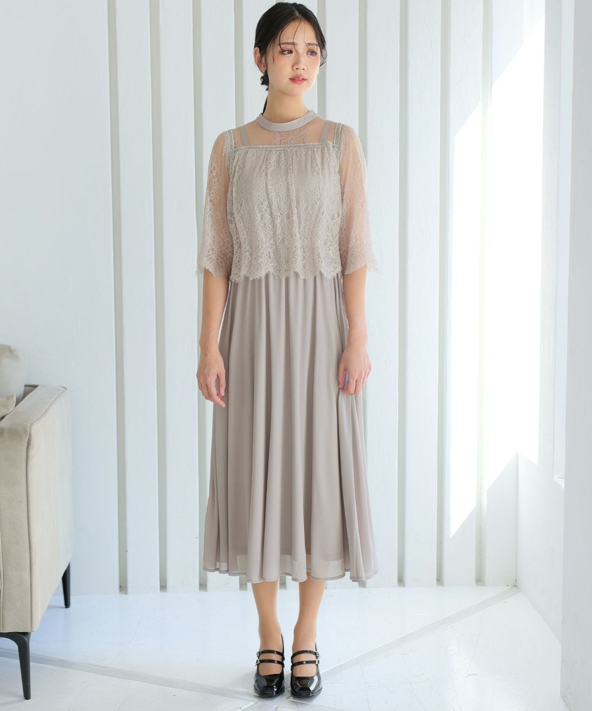 ■レースのスカラップとシフォンスカートがフェミニンな雰囲気を演出
