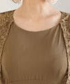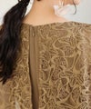 レースのケープが二の腕をカバーしてくれます。Uネックデザインで顔周りをすきっりと見せてくれます。