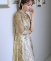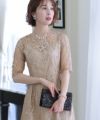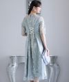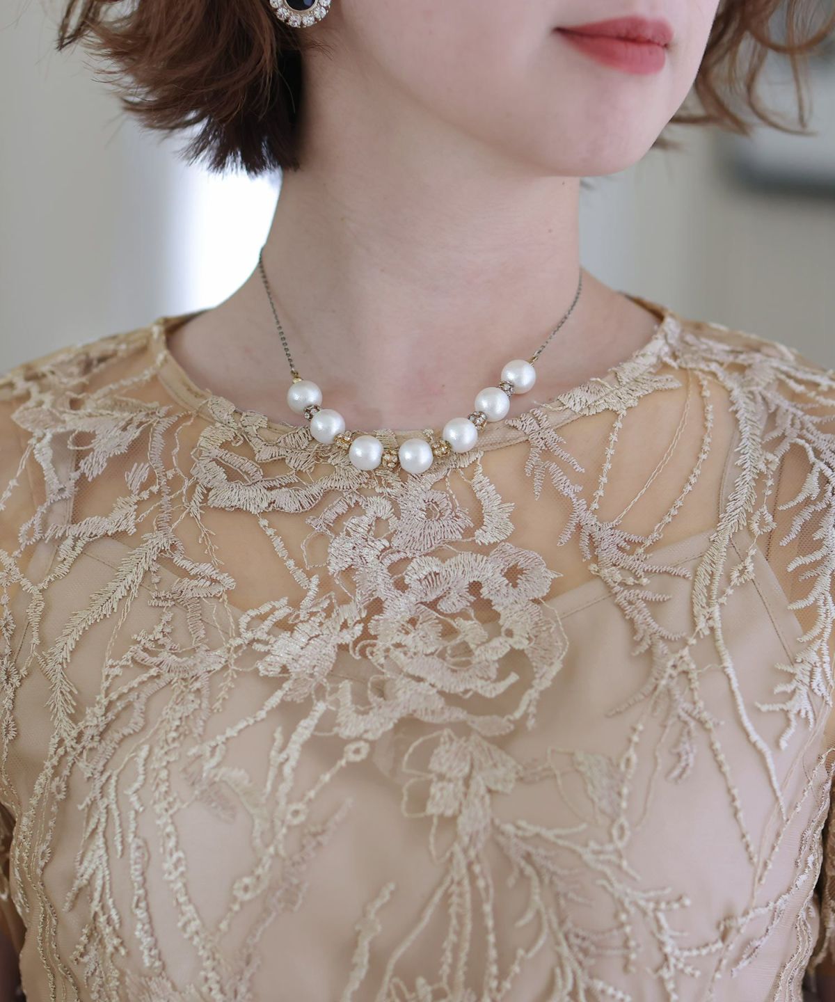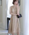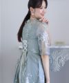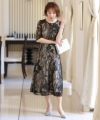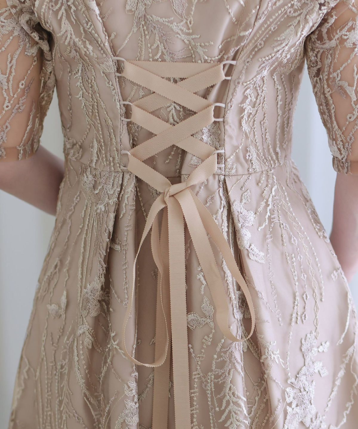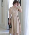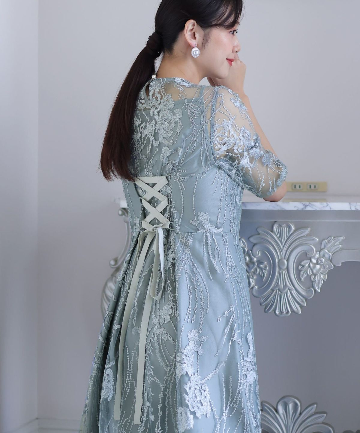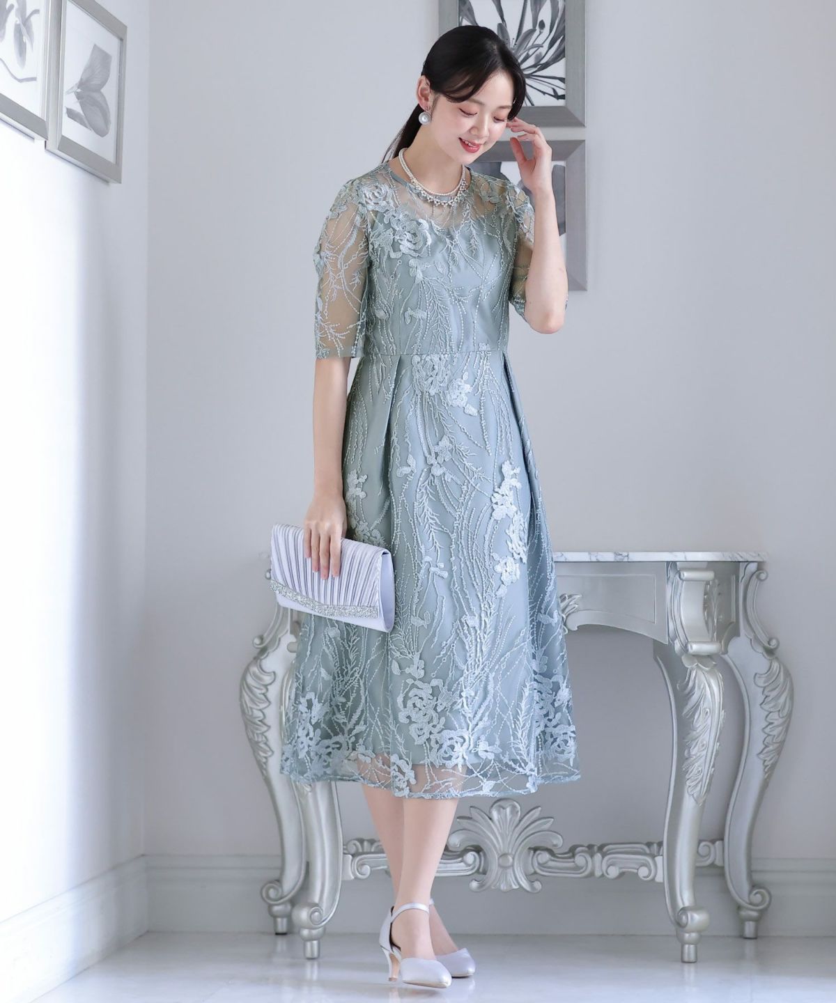 ボタニカルな総刺繍の光沢感が美しいレースドレス。大柄ながら繊細な刺繍ディティールなので、上品な印象に仕上がっています。