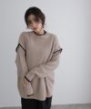 配色やフリルが大人可愛い ハイネック配色ボリュームニット