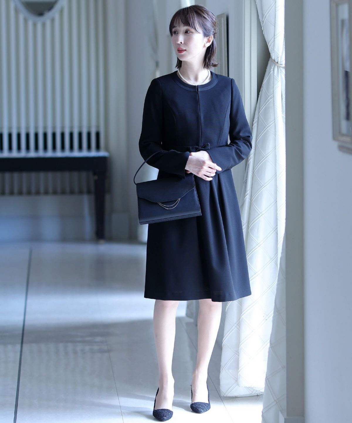 ジャケットを羽織るとウエストのリボンがポイントに。