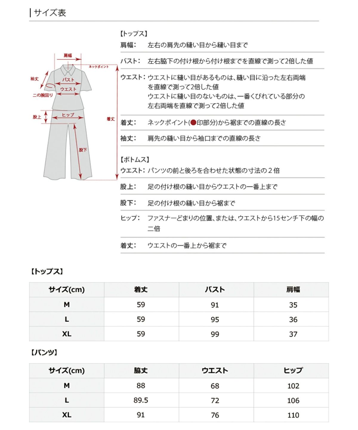 | サイズ表