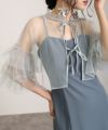 チュールのシースルートップスとキャミワンピのセットドレス。