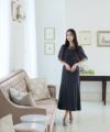 裾に向かうにつれ広がりを持たせているので二の腕カバーも安心。