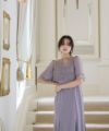 袖はオーガンジーを2枚合わせの五分袖の肘上丈で、