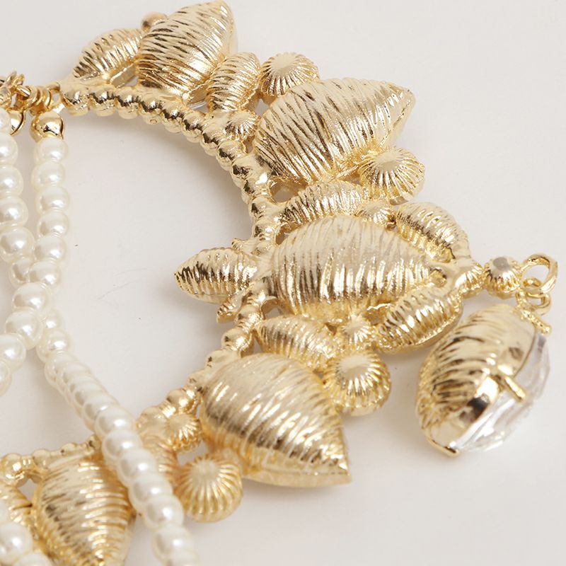 エレガントなパールが女性らしさを引き立て、ゴージャスなビジューがリッチ感を醸し出します。結婚式やパーティシーンなどの、華やかな場にピッタリです。