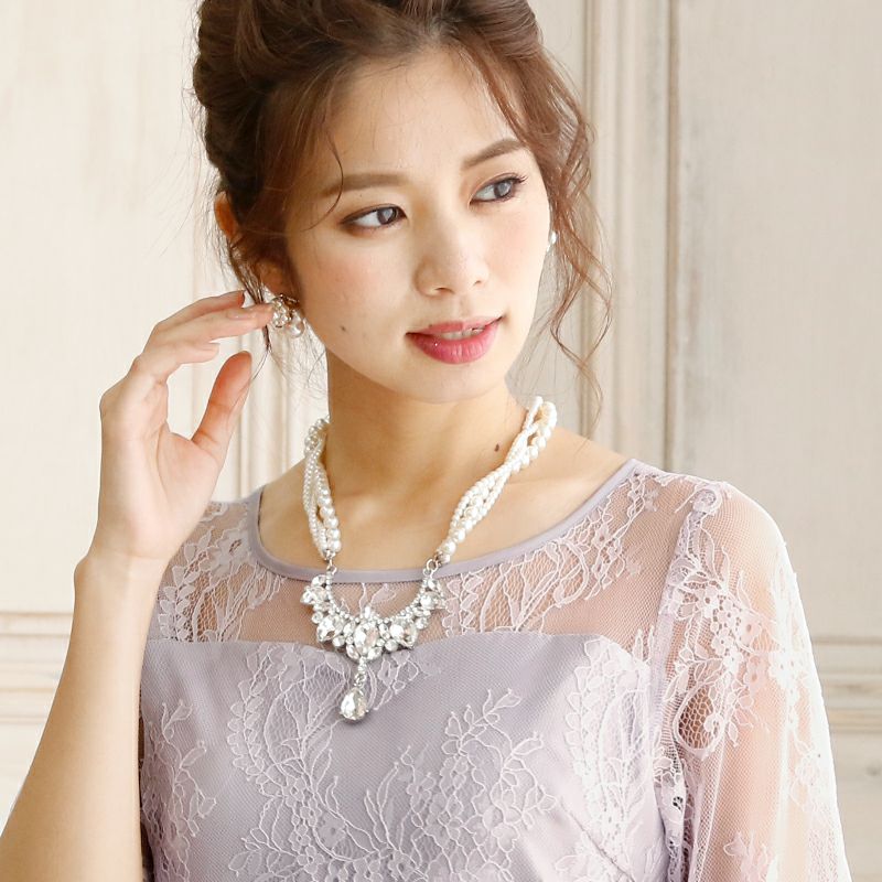 ゴージャスな存在感があるネックレスなので、シンプルドレスとの相性バッチリ!リッチな煌めきを添えてくれます。もちろんゴージャスなドレスにもオススメ!ドレスに負けない存在感を発揮してくれます。