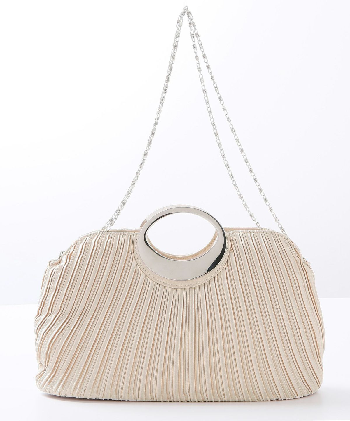 ビジュー サテンプリーツハンドバッグ 大きめ