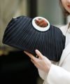 ビジュー サテンプリーツハンドバッグ 大きめ