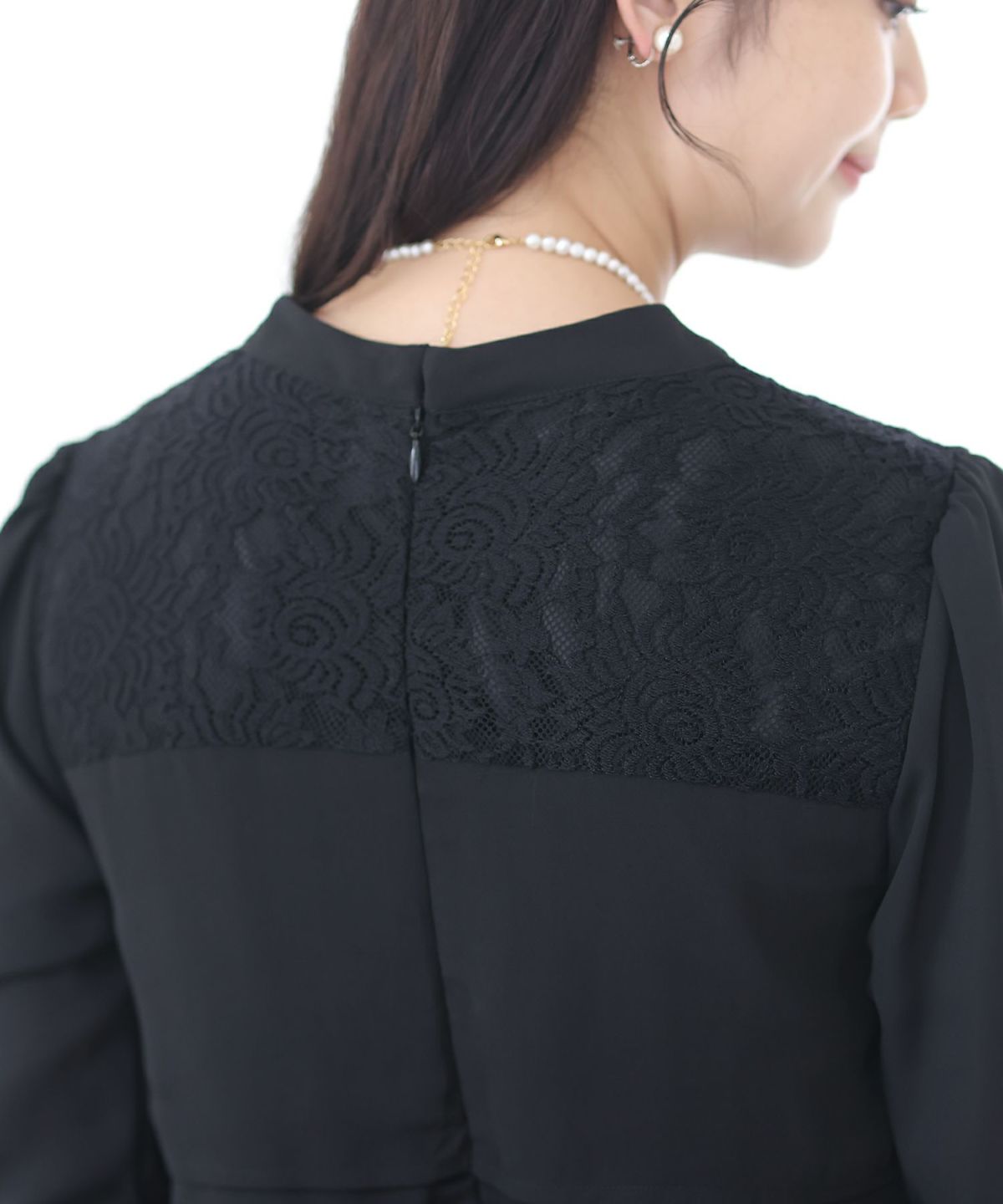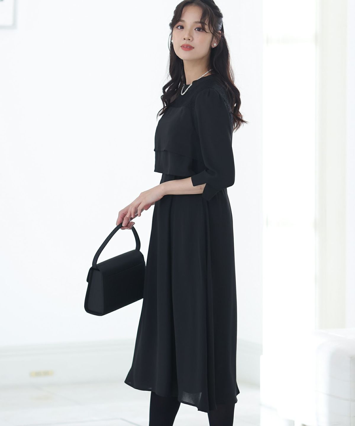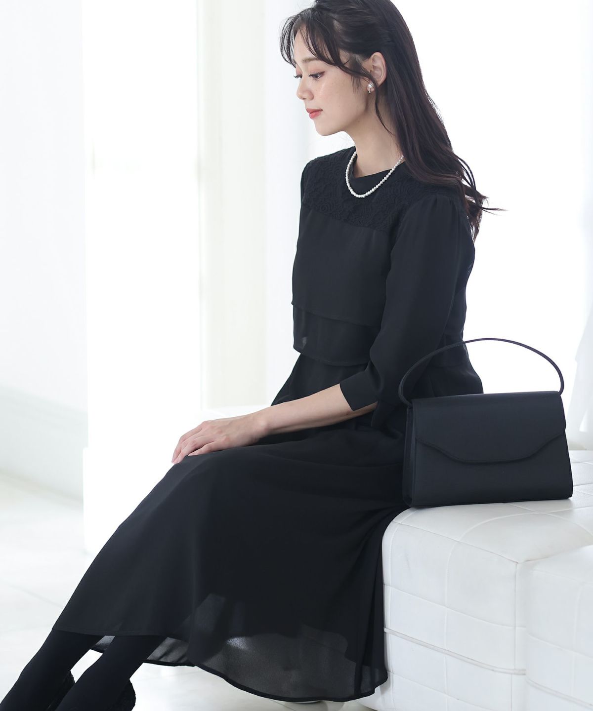 ■レース×シフォンレースとシフォンの切り替えが可愛いブラックワンピース。柔らかいシフォン生地で優しい雰囲気を演出します。バスト部分にはファスナーが付いており、授乳中の方におすすめです。冠婚葬祭はもちろん、シンプルなデザインで使いやすいアイテムです。