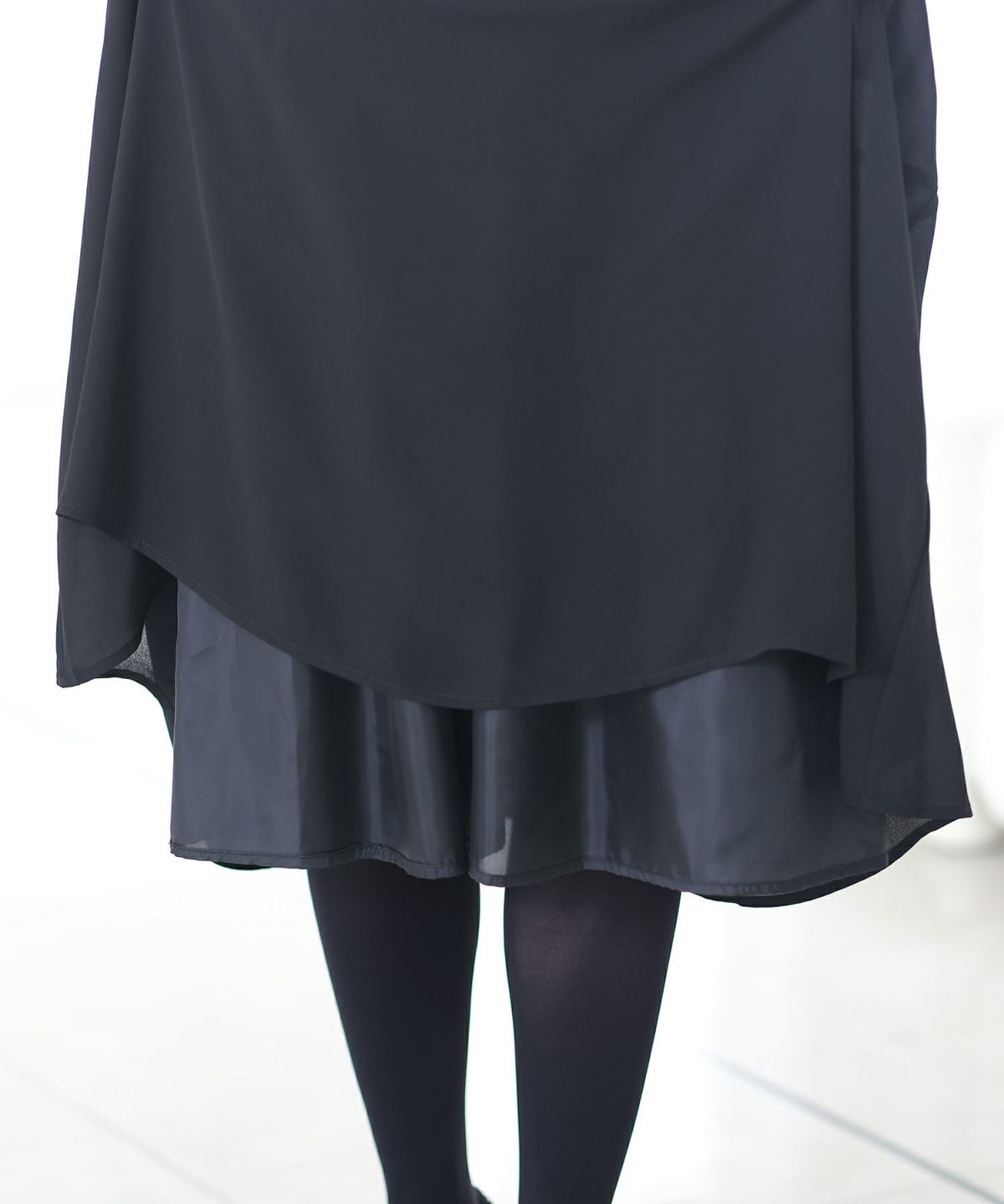 ■ストレスフリーな軽い着心地ウエスト背面はゴム仕様なので圧迫感がなく楽ちん。スカートは広がり方が上品でフォーマルなシーンで使いやすい一着です。