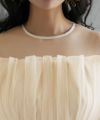 チュール素材を使用した、ビスチェデザインがこなれた印象の1着。