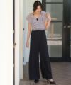 ワイドなパンツドレスで下半身のシルエットをすっきりと見せます。
